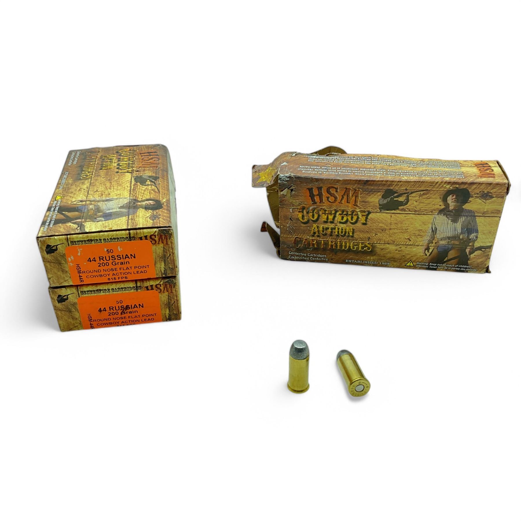 HSM Cowboy Action Cartridges 44 Russian, 200 Grain RNFP Cowboy Action Lead Ammunition, 150 Rounds