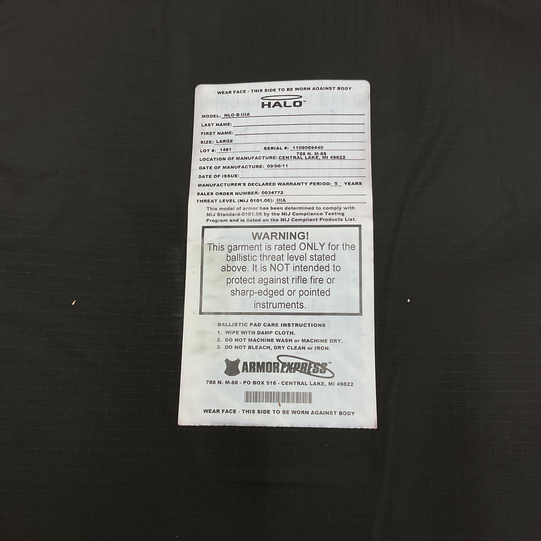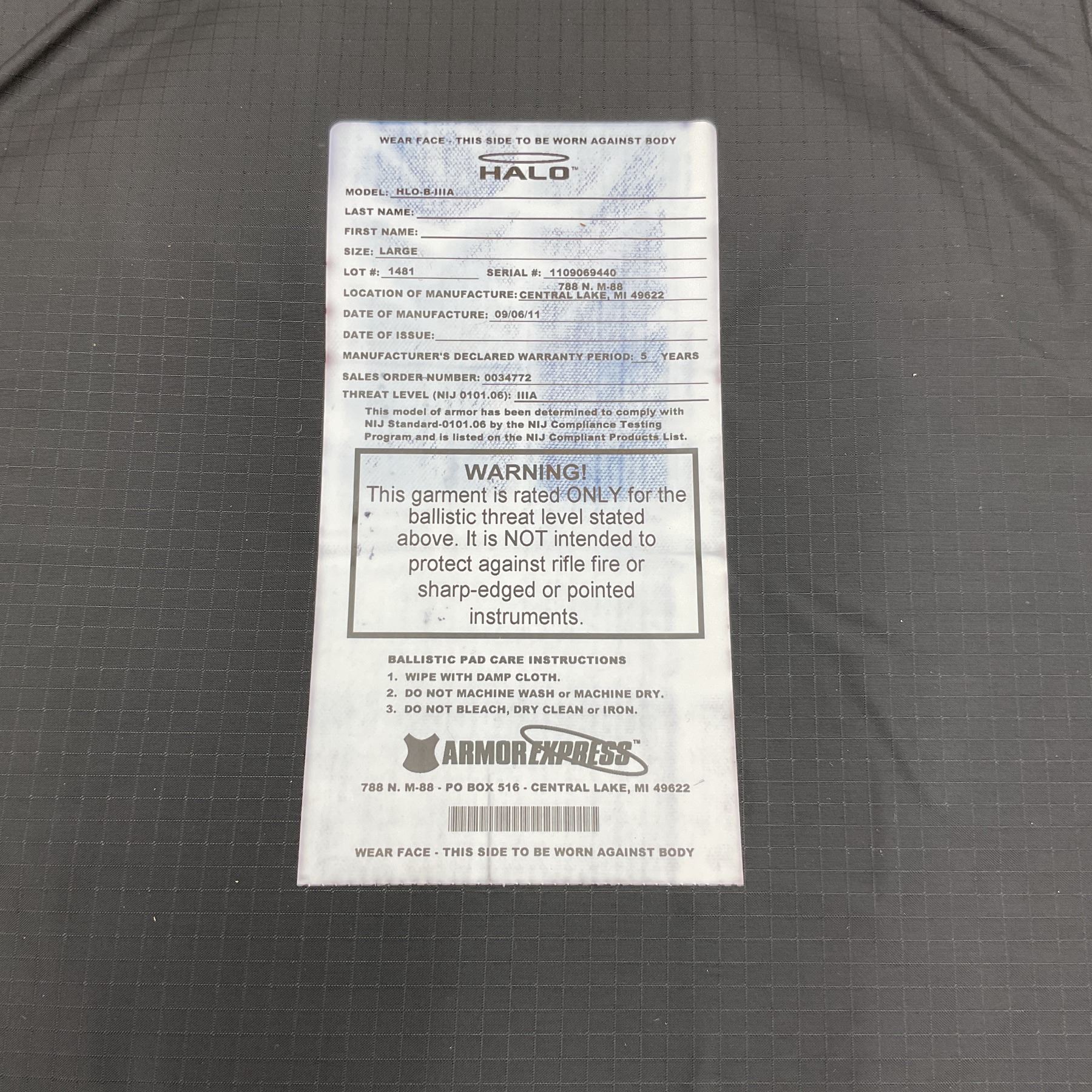 Halo Level IIIA Ballistic Vest with Lighthawk XT Plates Size Lg