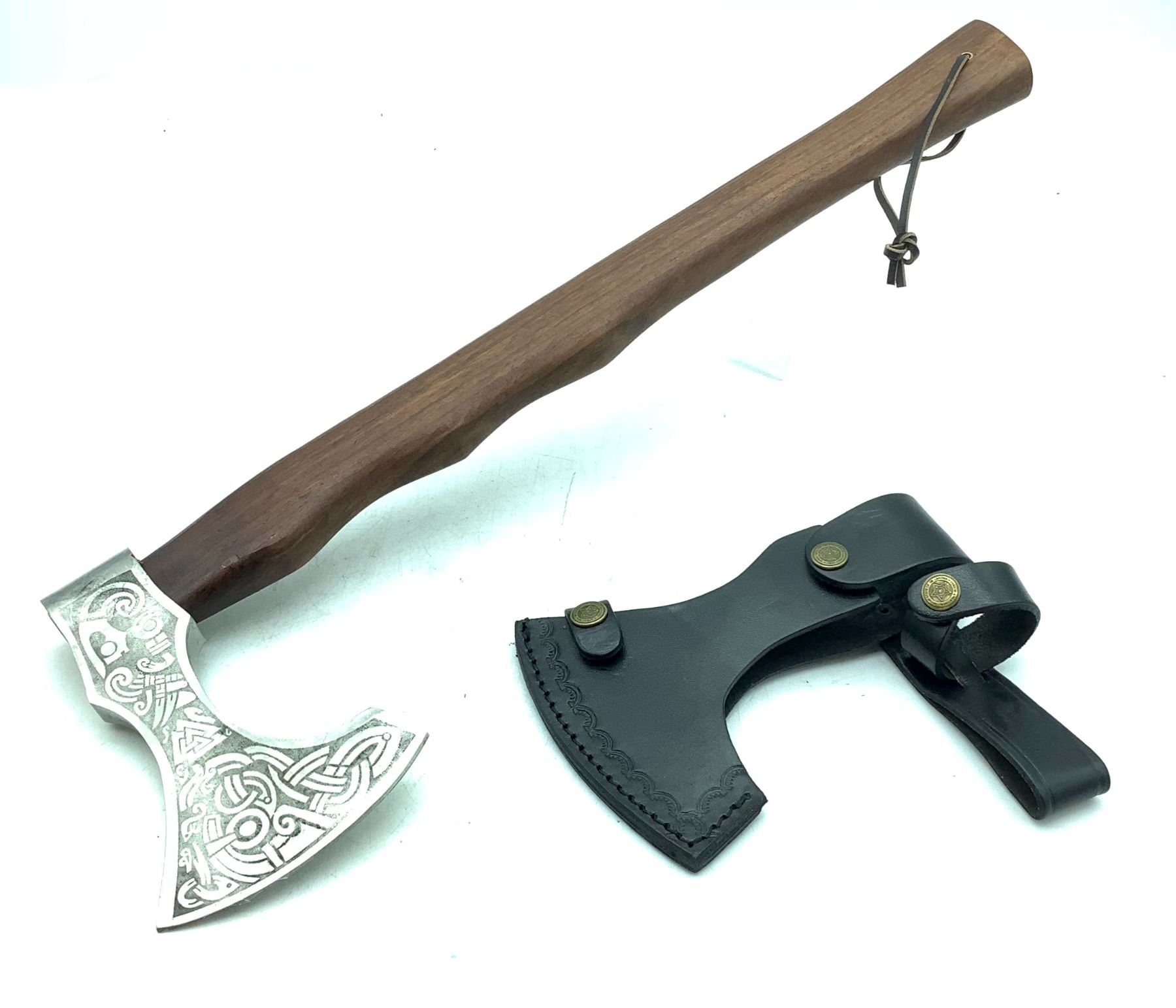Hand Forged Axe, 20" Overall Length with Leather Sheath, New