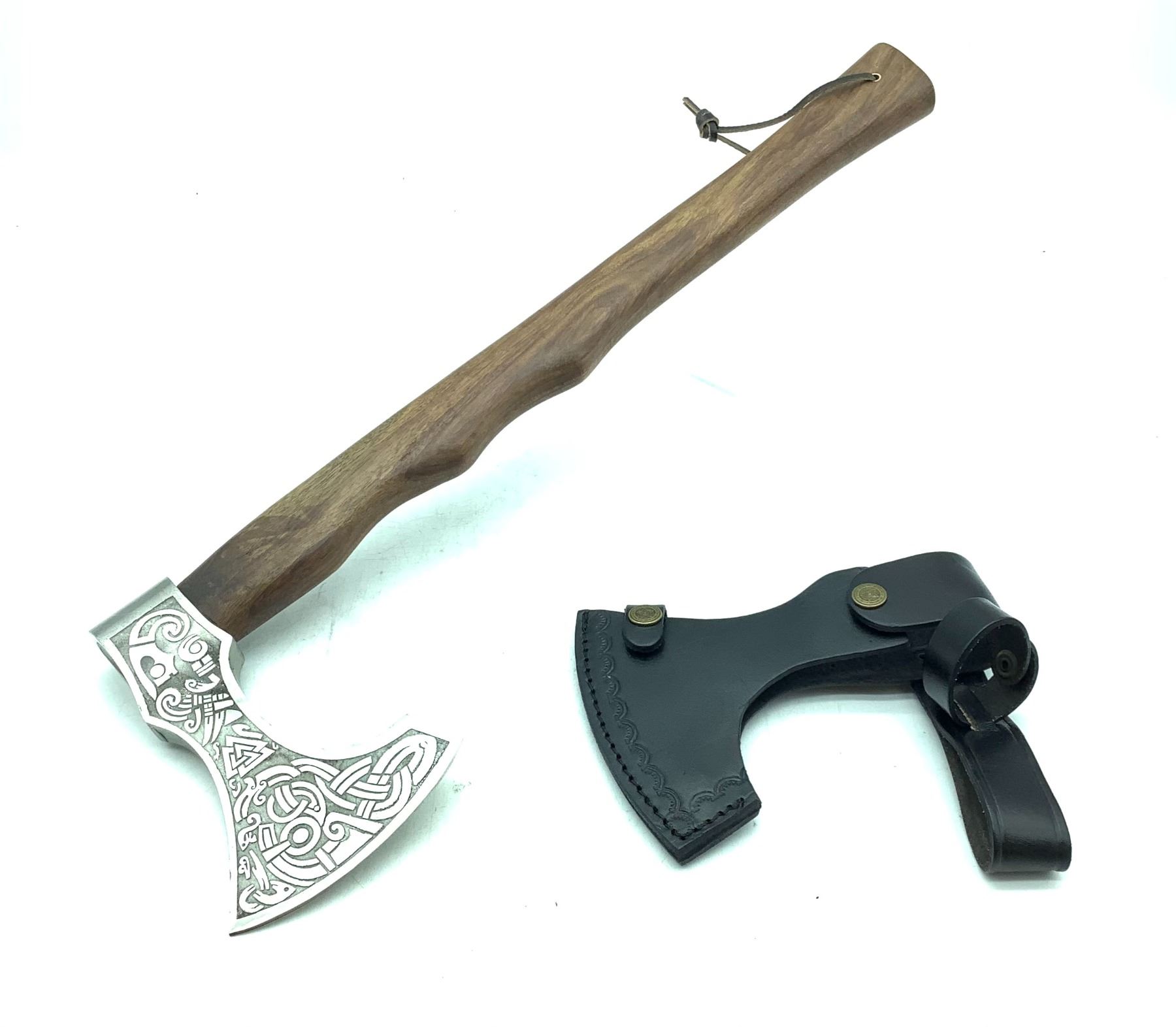 Hand Forged Axe, 20 " Overall Length with Leather Sheath, New