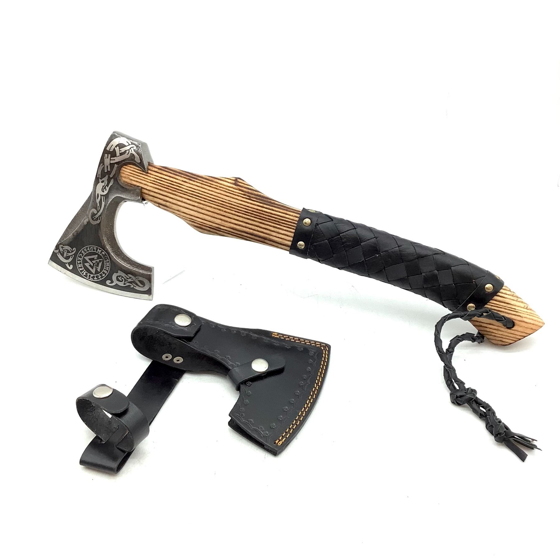 Hand Forged Axe with 5" Blade, 20" Overall Length with Leather Wrapped Wood Handle