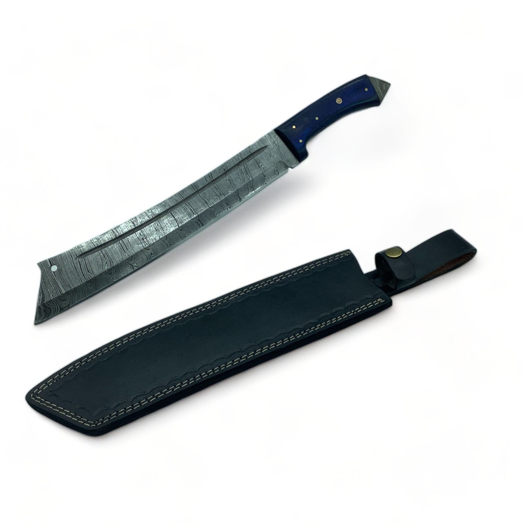 Hand Forged Damascus Fixed 11" Blade Knife with Leather Sheath