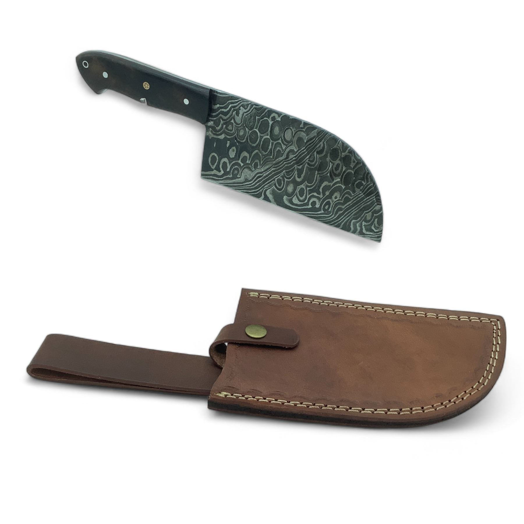 Hand Forged Damascus Fixed 7" Blade Cleaver with Leather Sheath