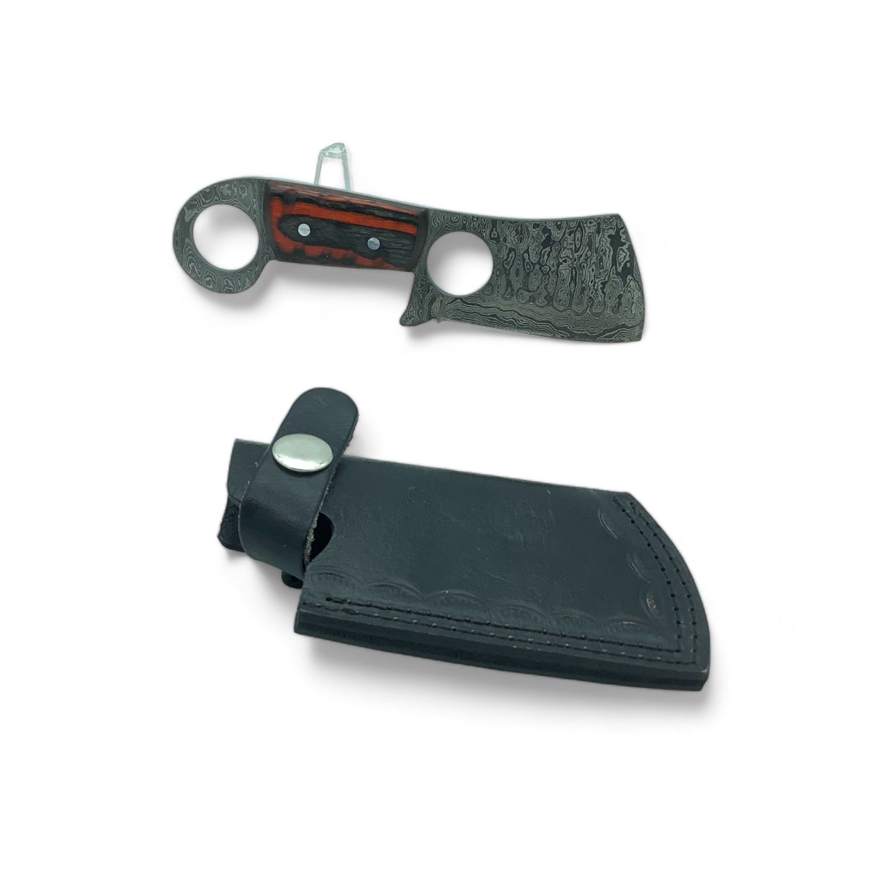 Hand Forged Damascus Folding 2.5" Blade with Leather Sheath