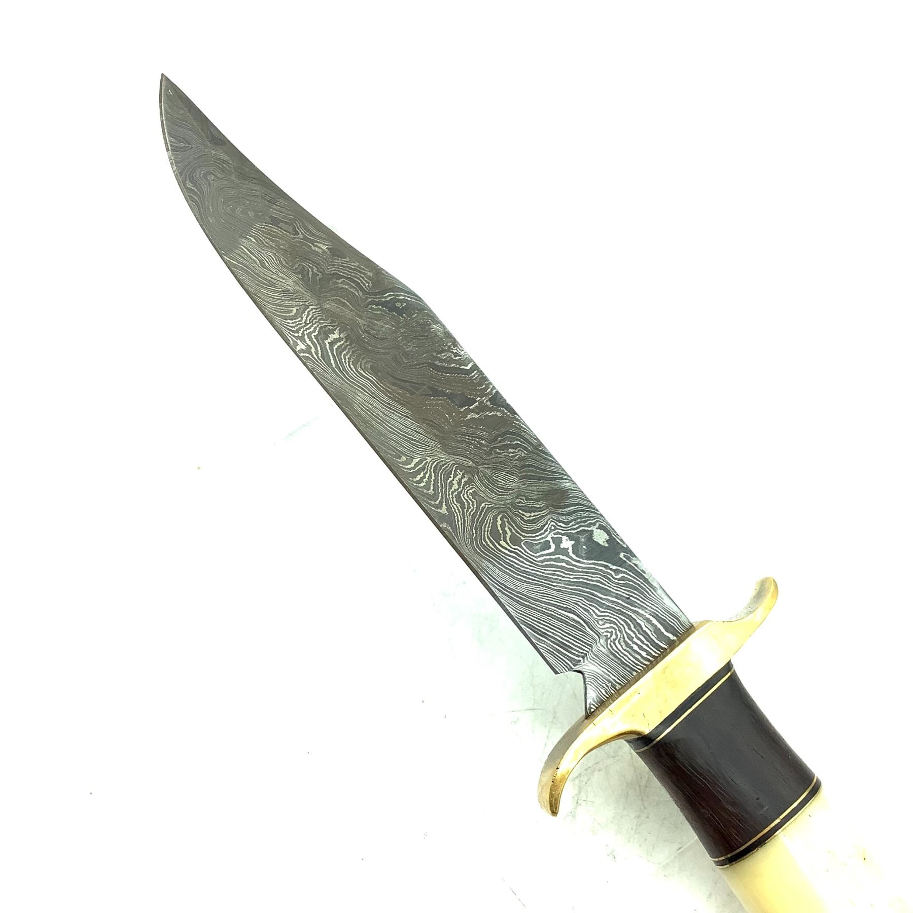 Hand Forged Fixed 7" Blade Bowie Knife With Bone/ Wood Handle and Sheath. Rust on Blade