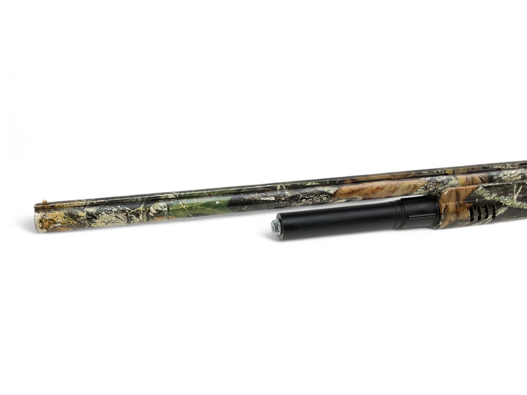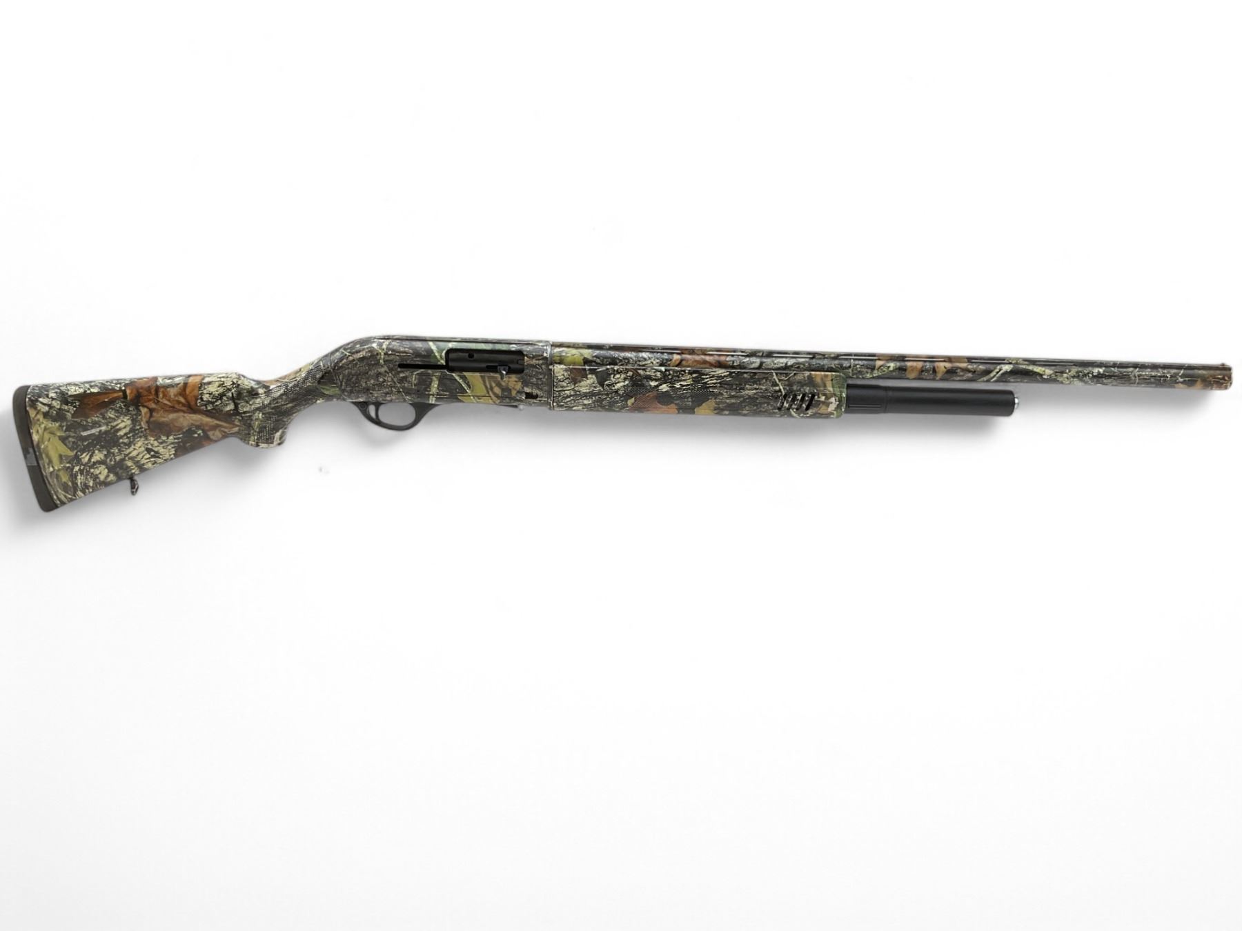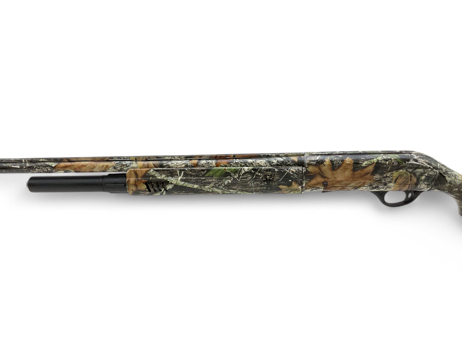 Hatsan Escort Semi Auto Shotgun 12Ga 3" Chamber 28" Vent Rib Barrel Synthetic Stock Camo. Magazine tube over ride button missing; may be missing other parts. Bead sight; barrel has a removable choke that appears to be seized in barrel. Custom extended mag tube has been pinned. This is a non-restricted firearm.