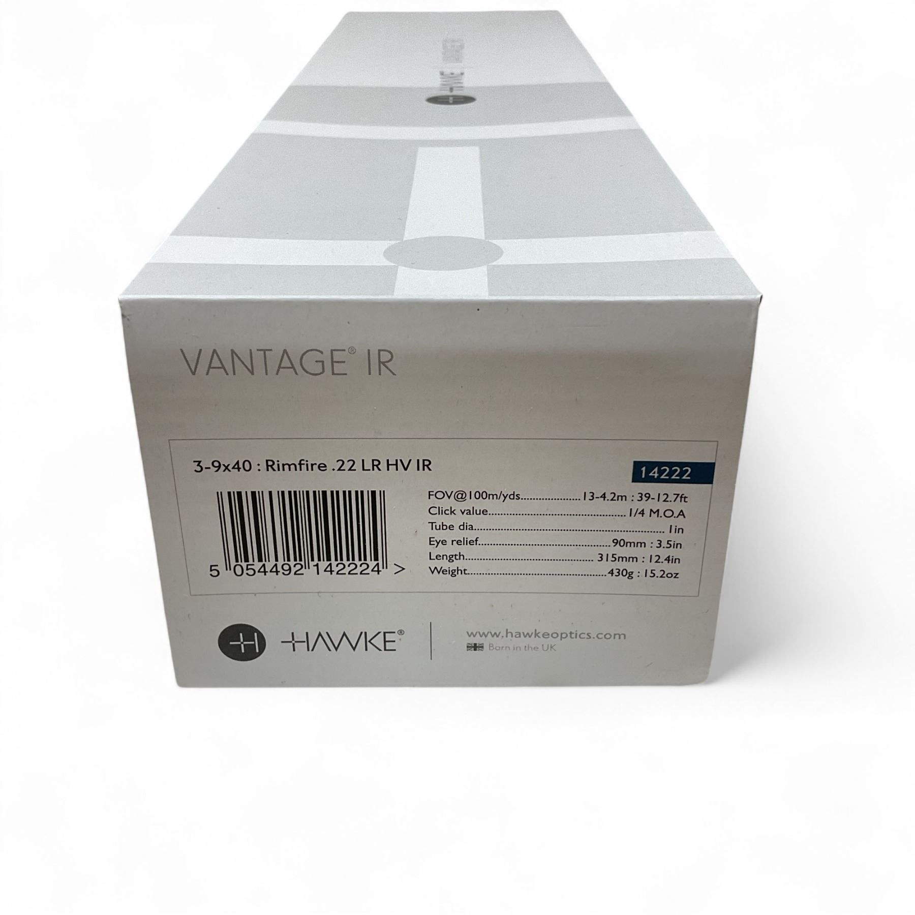 Hawke Vantage IR 3-9x40mm Scope, Rimfire .22 HV Reticle, 1" Tube, New