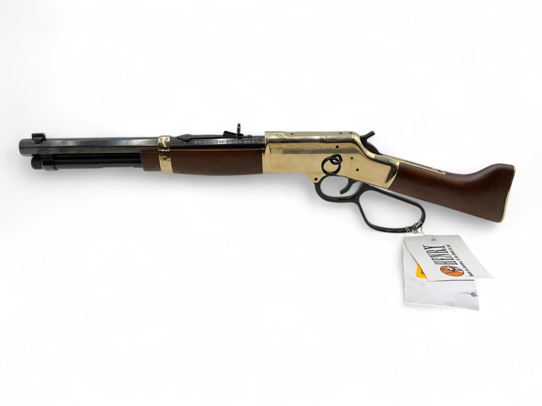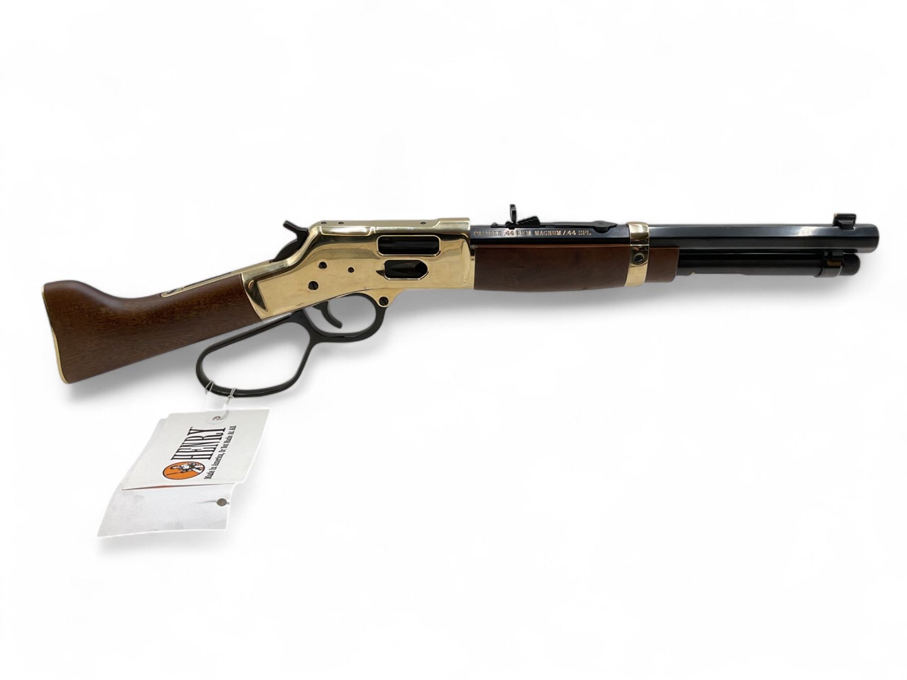Henry Big Boy Lever Action Rifle .44 Mag 12" Octagon Barrel Side Gate Blued Mares Leg Stock, New. Tubular magazine, brass receiver with saddle ring. Fixed front sight, adjustable rear sight. This is a non-restricted firearm.