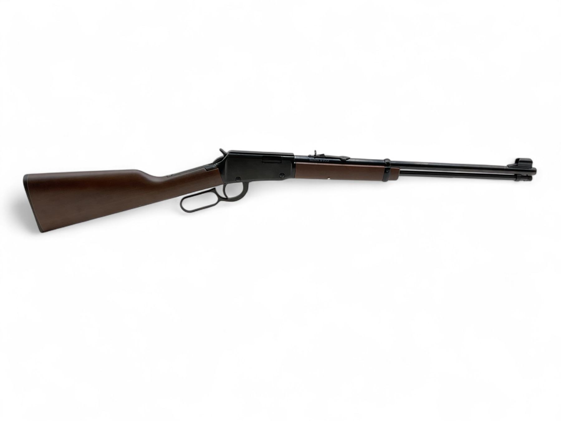 Henry H001 Lever Action Rifle .22 S/L/LR 18.5" Barrel Wood Stock. Tubular magazine. Hooded front sight, adjustable rear sight. This is a non-restricted firearm.