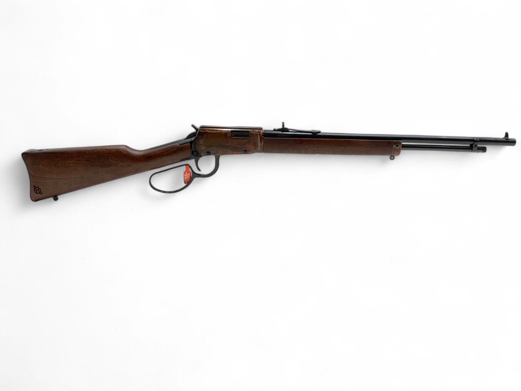 Heritage Settler Lever Action Rifle 22LR 20" Barrel Wood Stock, New. Tubular magazine, factory open sights. Simulated case hardened finish on receiver. This is a non-restricted firearm.