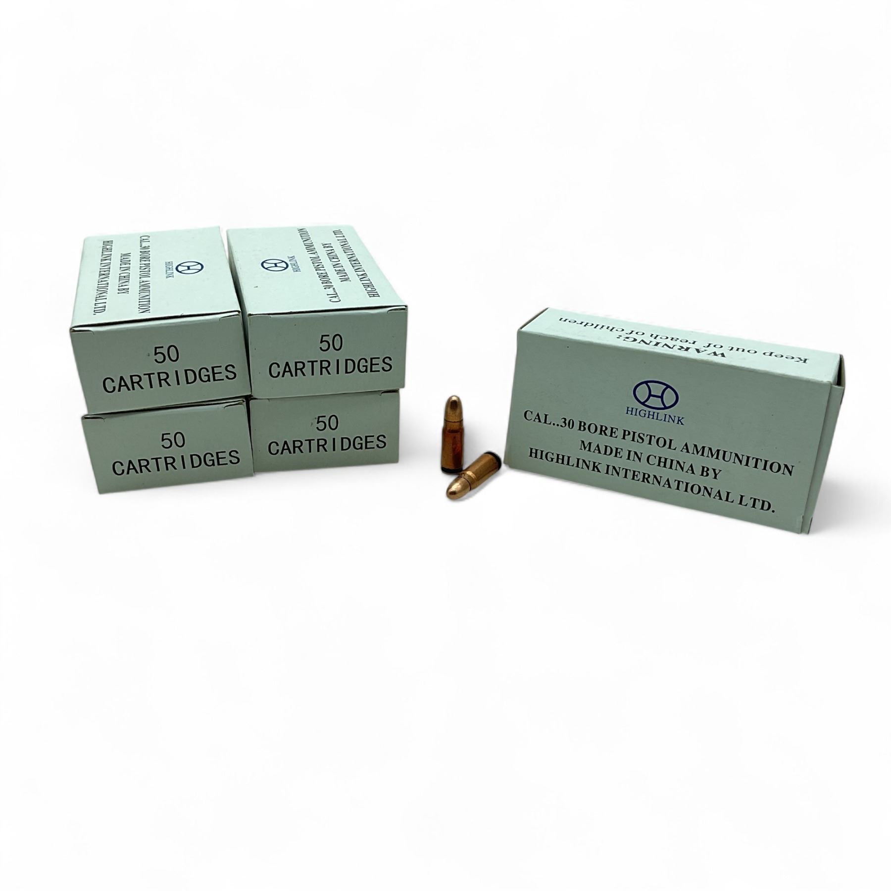 Highlink 7.62x25mm Tokarev, 85 Grain FMJ Pistol Ammunition, 250 Rounds