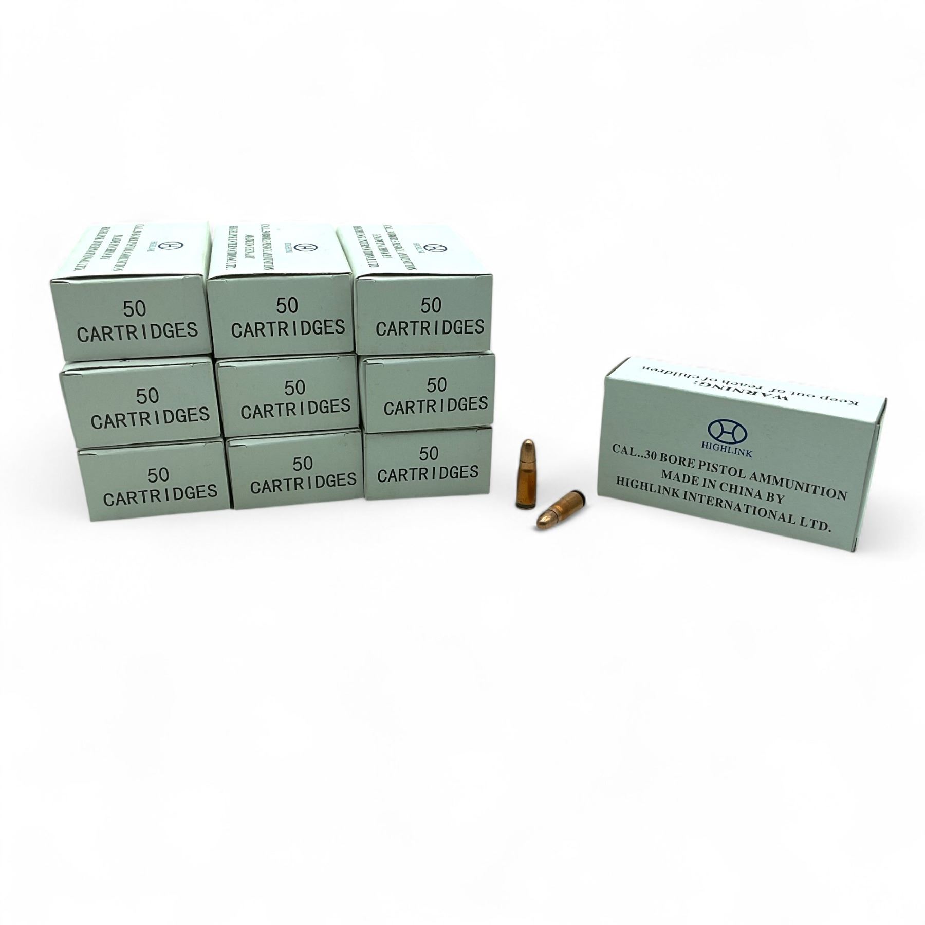 Highlink 7.62x25mm Tokarev, 85 Grain FMJ Pistol Ammunition, 500 Rounds