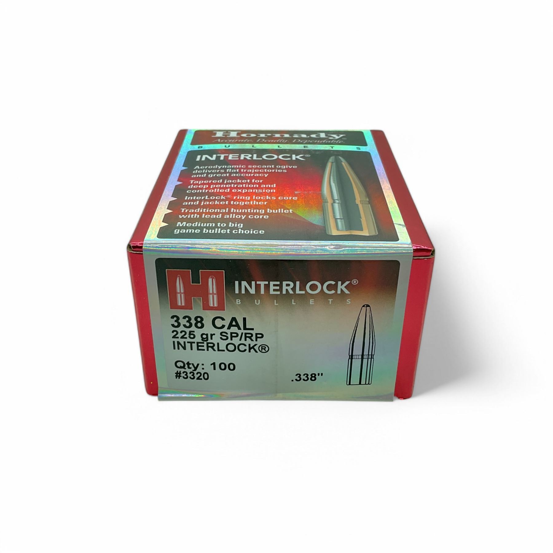 Hornady 338 Caliber (.338"), 225 Grain SP/ RP Interlock Projectiles, 100 Qty
