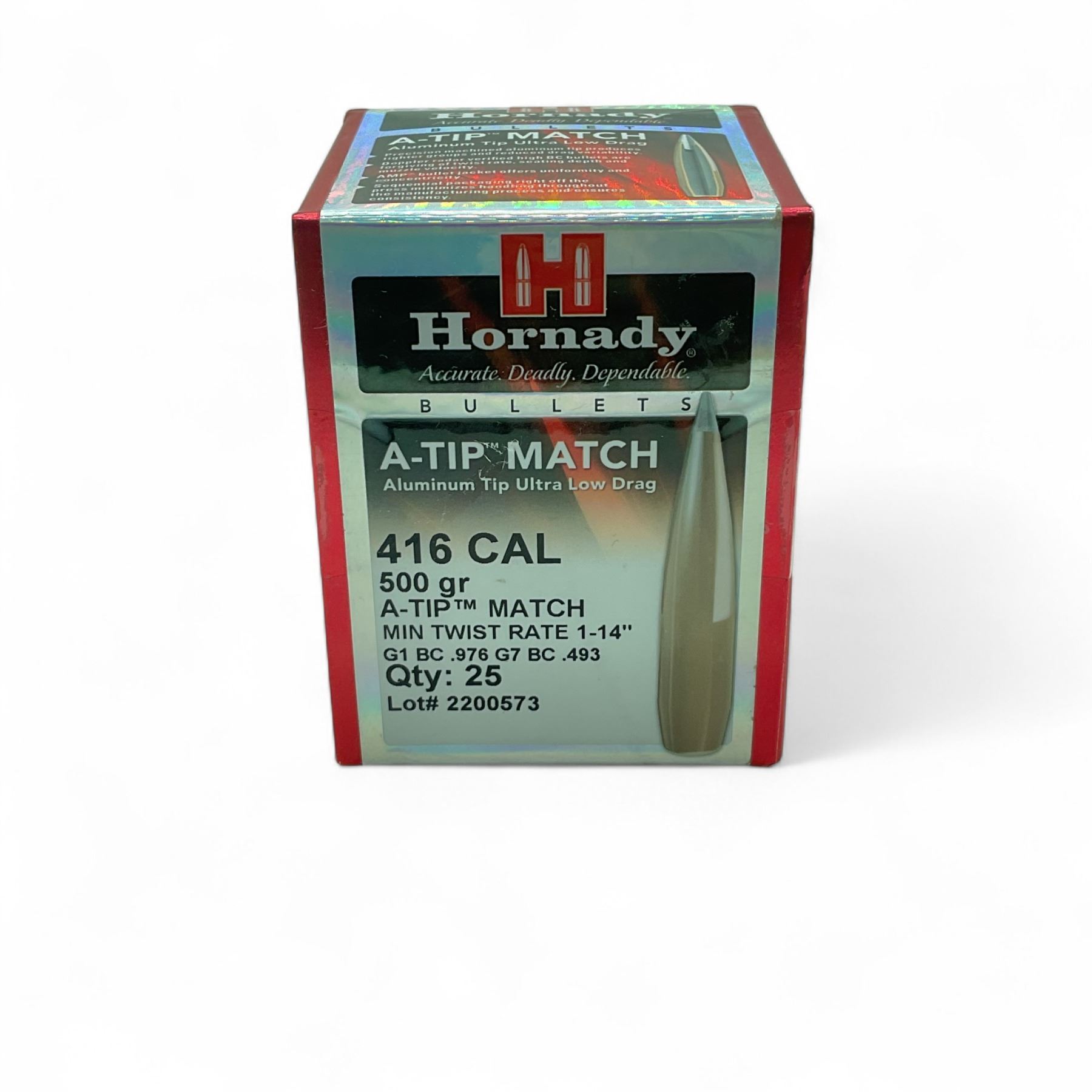 Hornady A-Tip Match 416 Cal 500 Grain Projectiles, 25 Qty