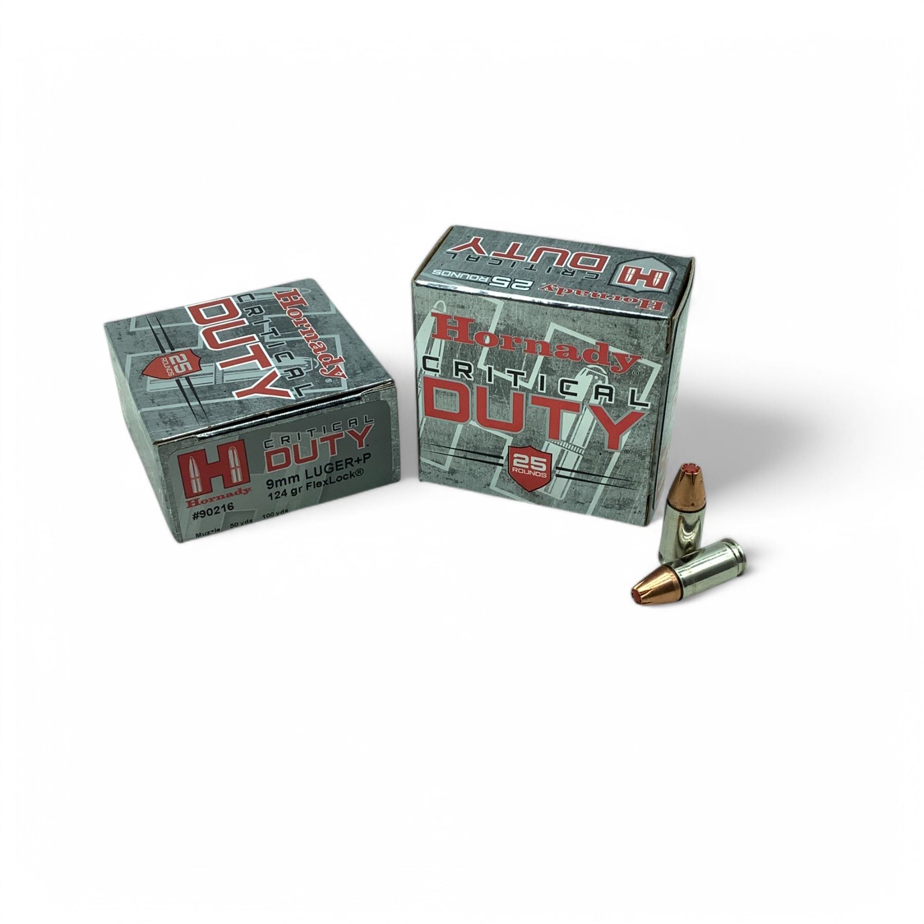 Hornady Critical Duty 9 mm Luger + P 124 Grain Flexlock Ammunition, 50 Rounds