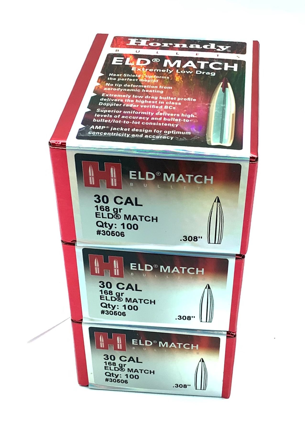 Hornady ELD Match 30 Cal .308" 168 Grain Projectiles, 300 Qty
