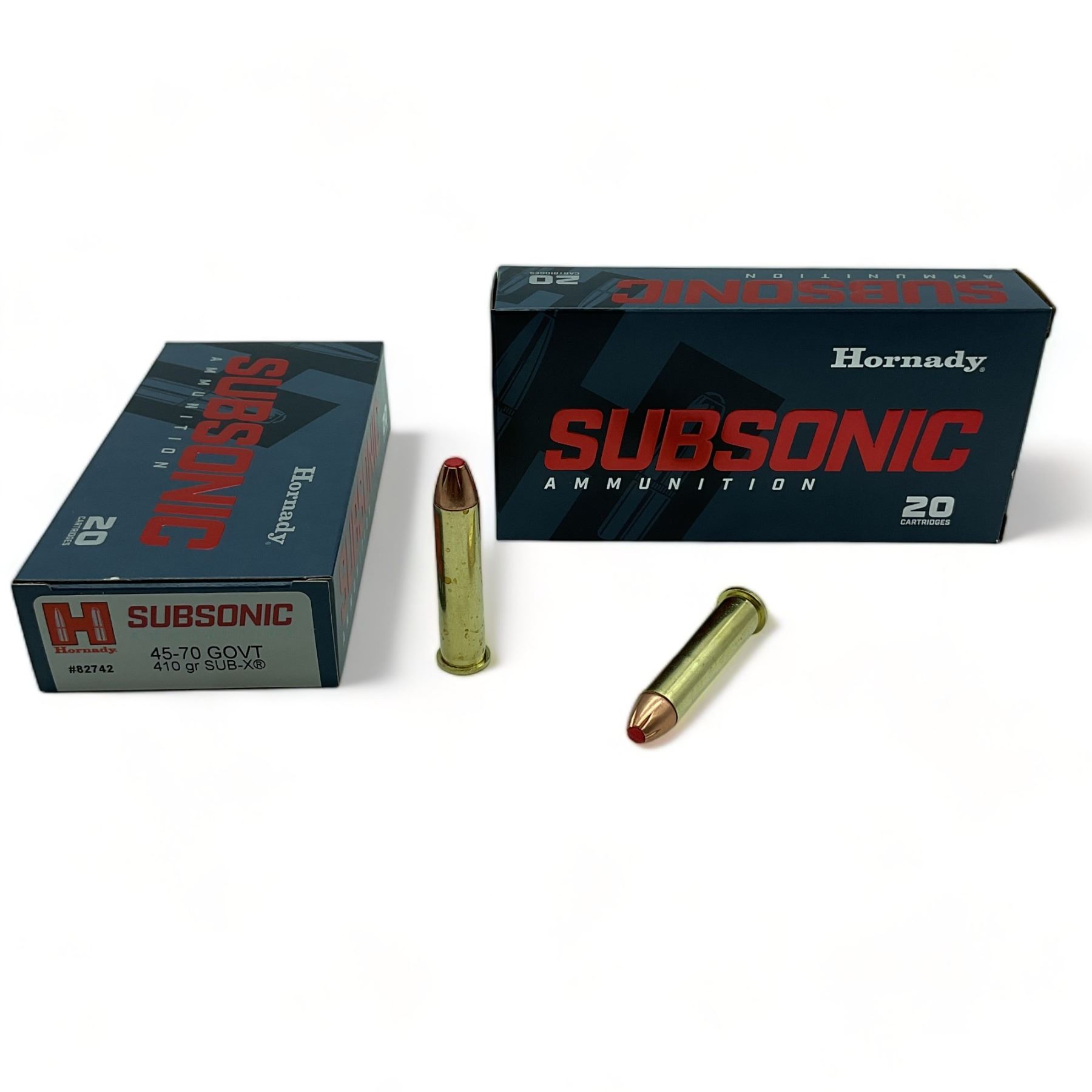 Hornady Subsonic 45-70 GOVT 410 Grain SUB-X Ammunition, 40 Rounds