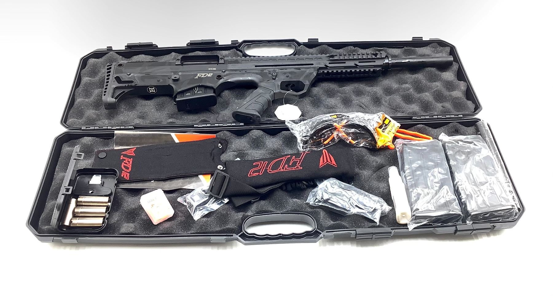 Hunt Group FD12 Semi Auto Mag Fed 12 Ga Bullpup Shotgun 20" Barrel Black, New. Includes interchangeable chokes and case. Comes with sling, three magazines and flip up sights. This is a non-restricted firearm.