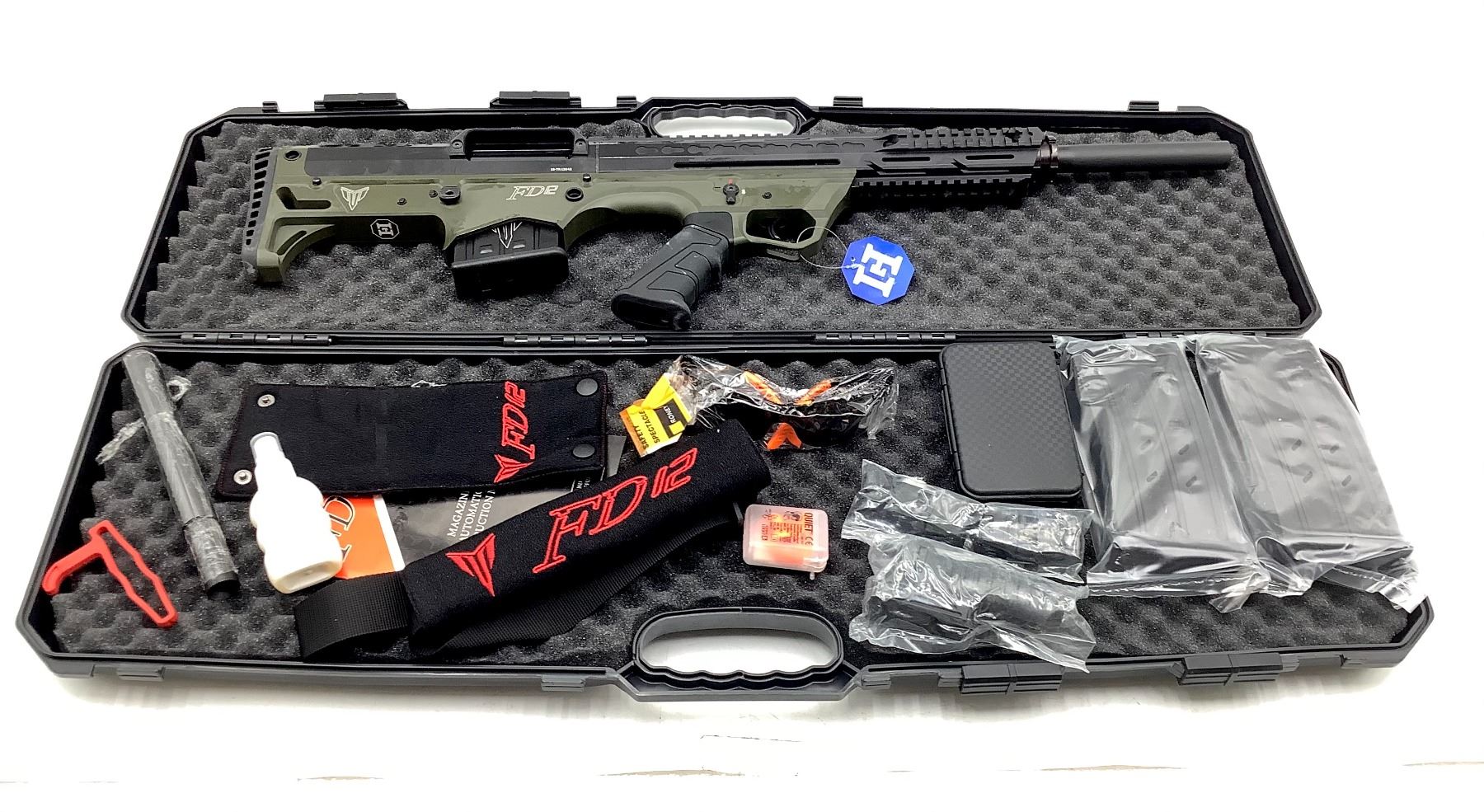 Hunt Group FD12 Semi Auto Mag Fed 12 Ga Bullpup Shotgun 20" Barrel OD Green/Black, New. Includes interchangeable chokes. Comes with three magazines, sling, case and flip up sights. This is a non-restricted firearm.