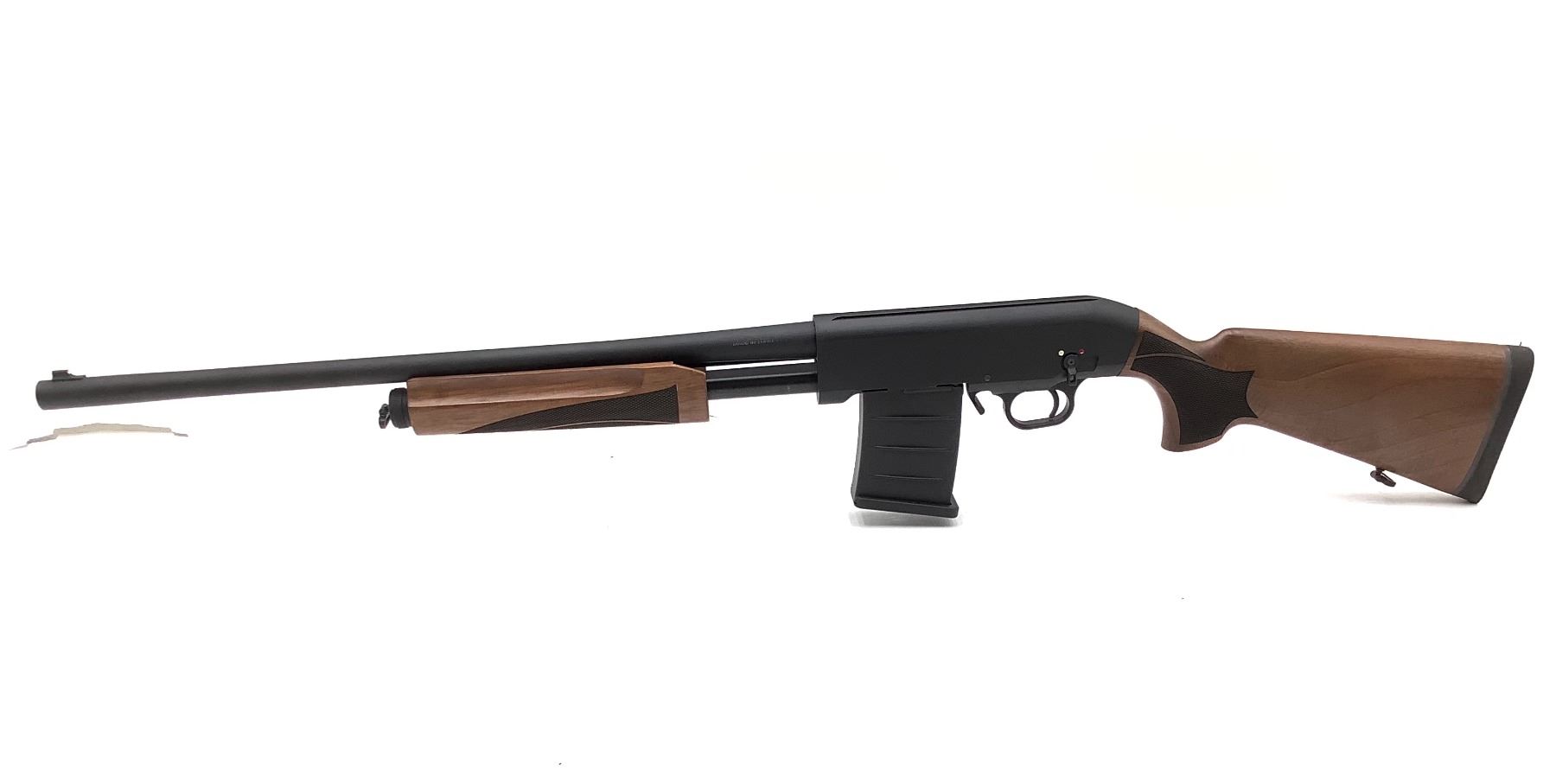Hunt Group MH-P Pump Action Shotgun 12Ga 24" Barrel 3" Chamber Walnut Stock, New. Comes with interchangeable chokes and two magazines. Includes plastic case. This is a non-restricted firearm.