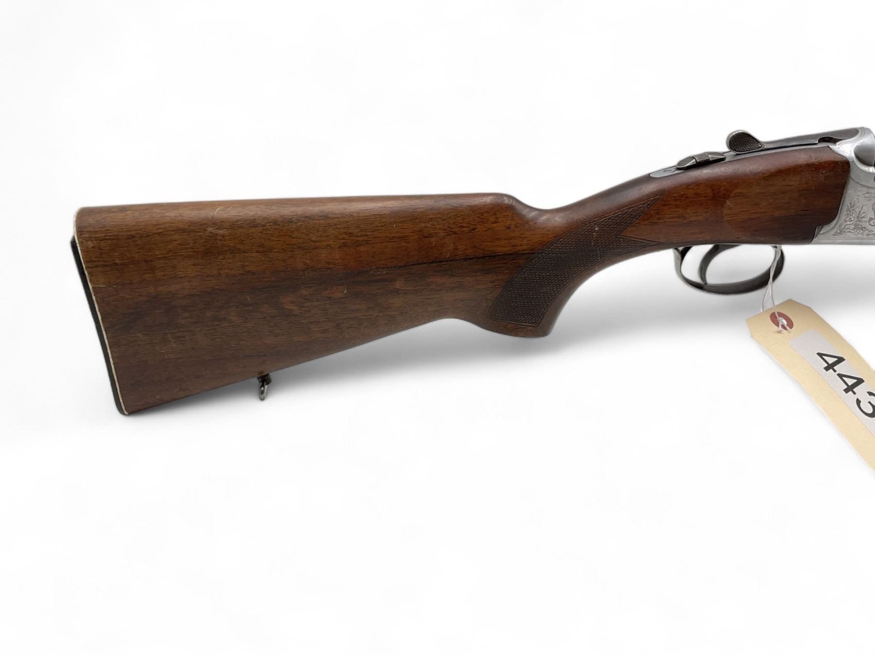 Husqvarna 300 Over Under 12Ga Shotgun 27" Barrels Wood Stock. Vent rib, bead sight broken. Plastic butt plate broken and missing a piece. Rear stock missing hardware and is not secured to receiver; trigger and safety do not function. This is a non-restricted firearm.