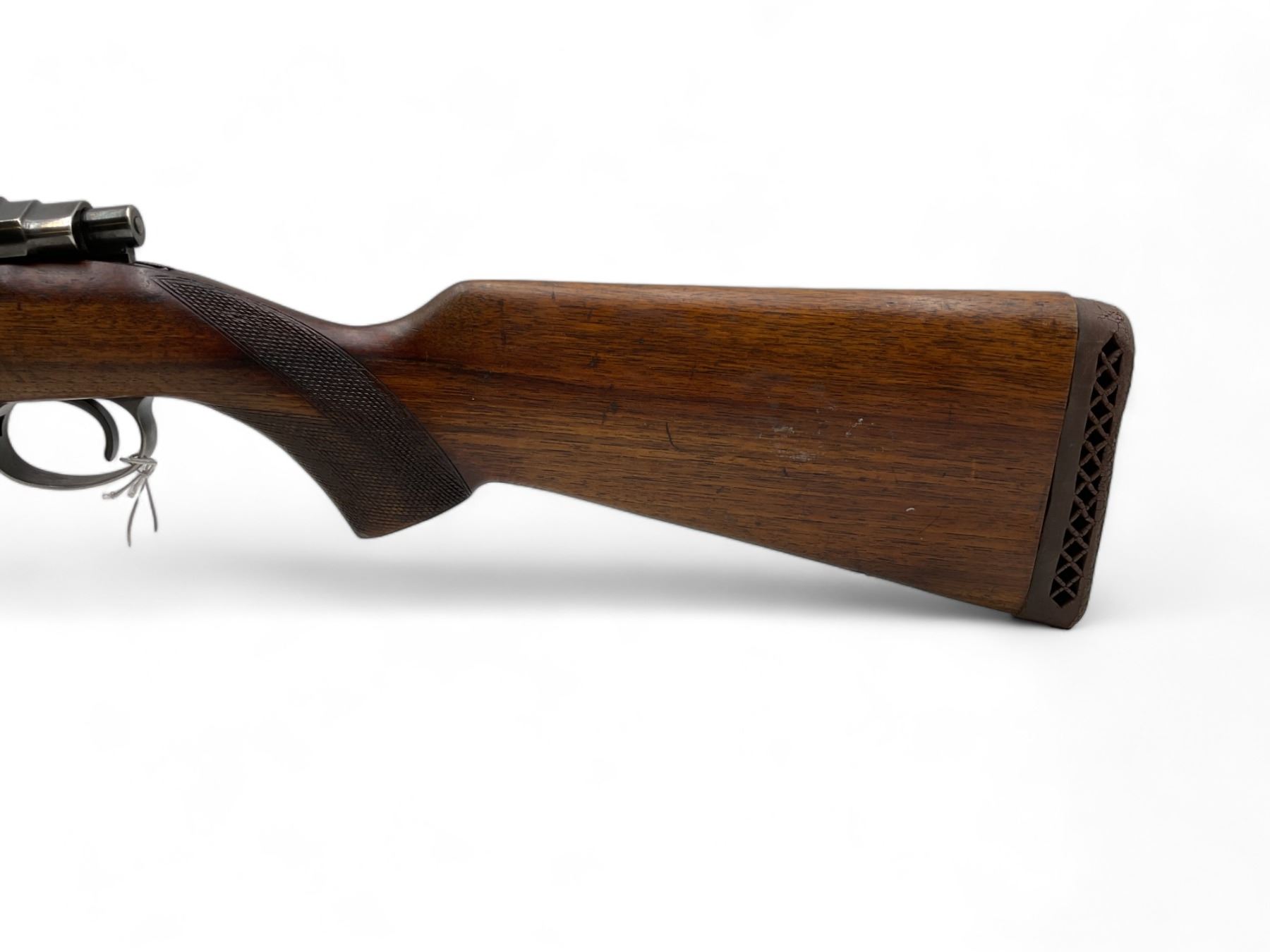 Husqvarna Bolt Action Rifle 30/06 24" Barrel Wood Stock. Internal magazine, factory open sights. Receiver drilled and tapped with bases installed. Aftermarket rubber butt pad. This is a non-restricted firearm.