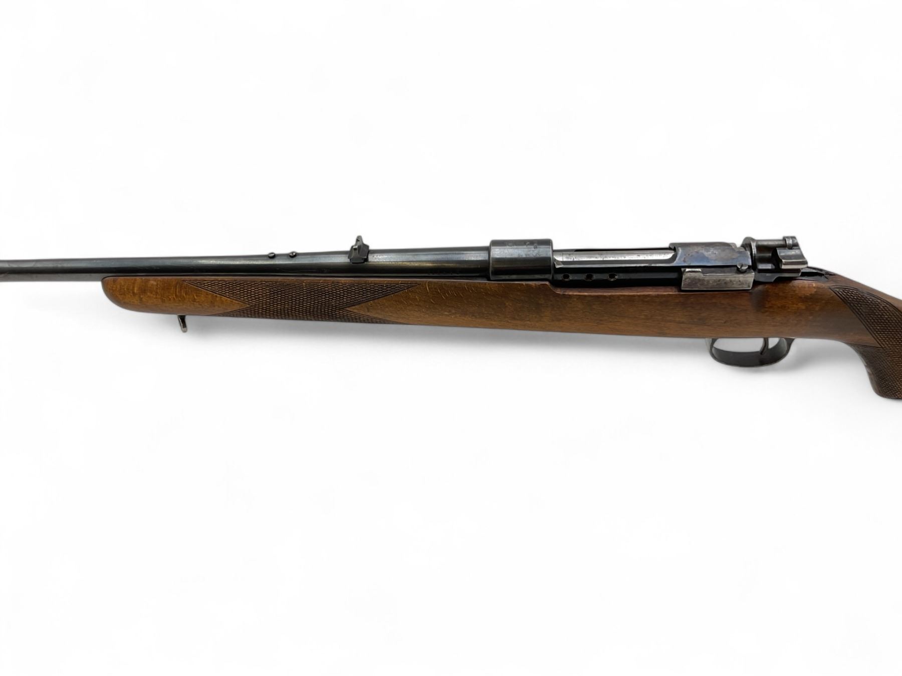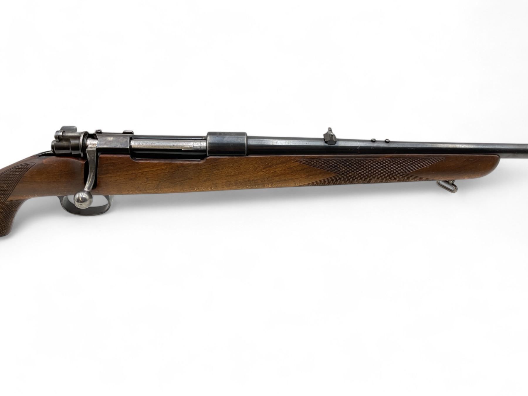Husqvarna Bolt Action Rifle 8X57 24" Barrel Wood Stock Internal magazine with base plate. Ramp front sight, fixed rear sight. Side of receiver drilled and tapped. This is a non-restricted firearm.