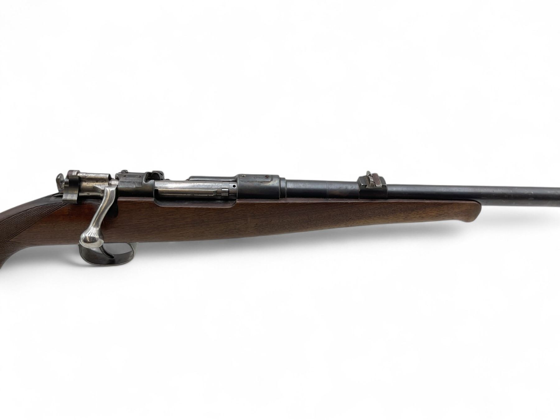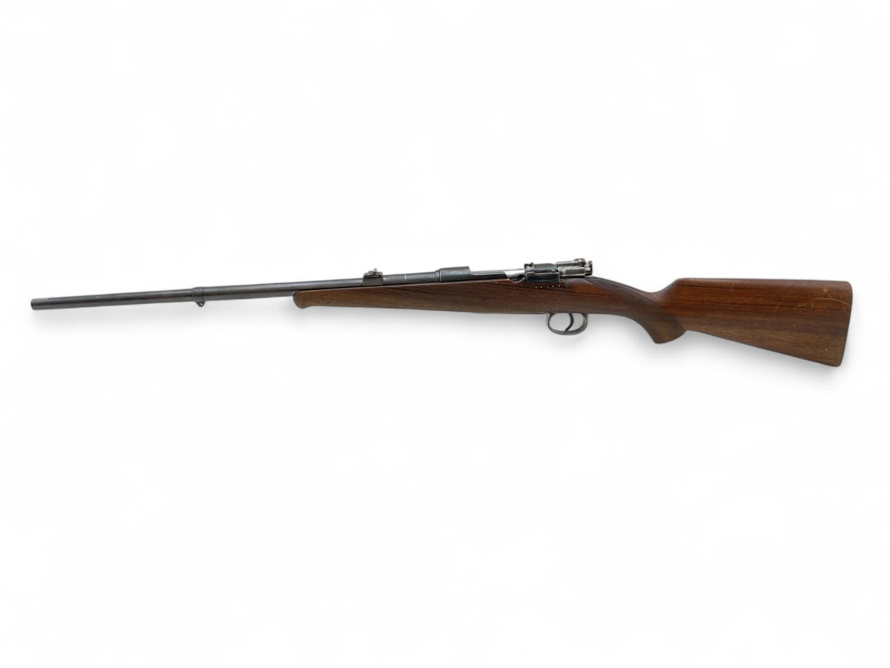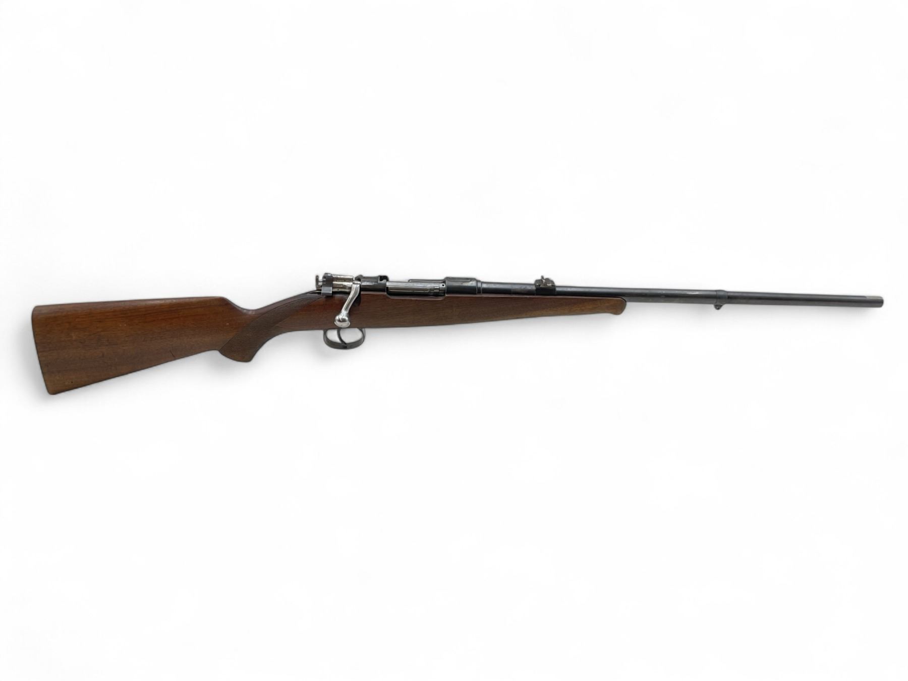 Husqvarna M96 Bolt Action Rifle 6.5X55 22" Barrel Wood Stock. Front sight missing, rear sight present. Internal magazine with base plate. Receiver drilled and tapped. Bolt will not open all the way and trigger will not release. Stock has been repaired on left side near bolt release lever. No butt plate present. This is a non-restricted firearm.