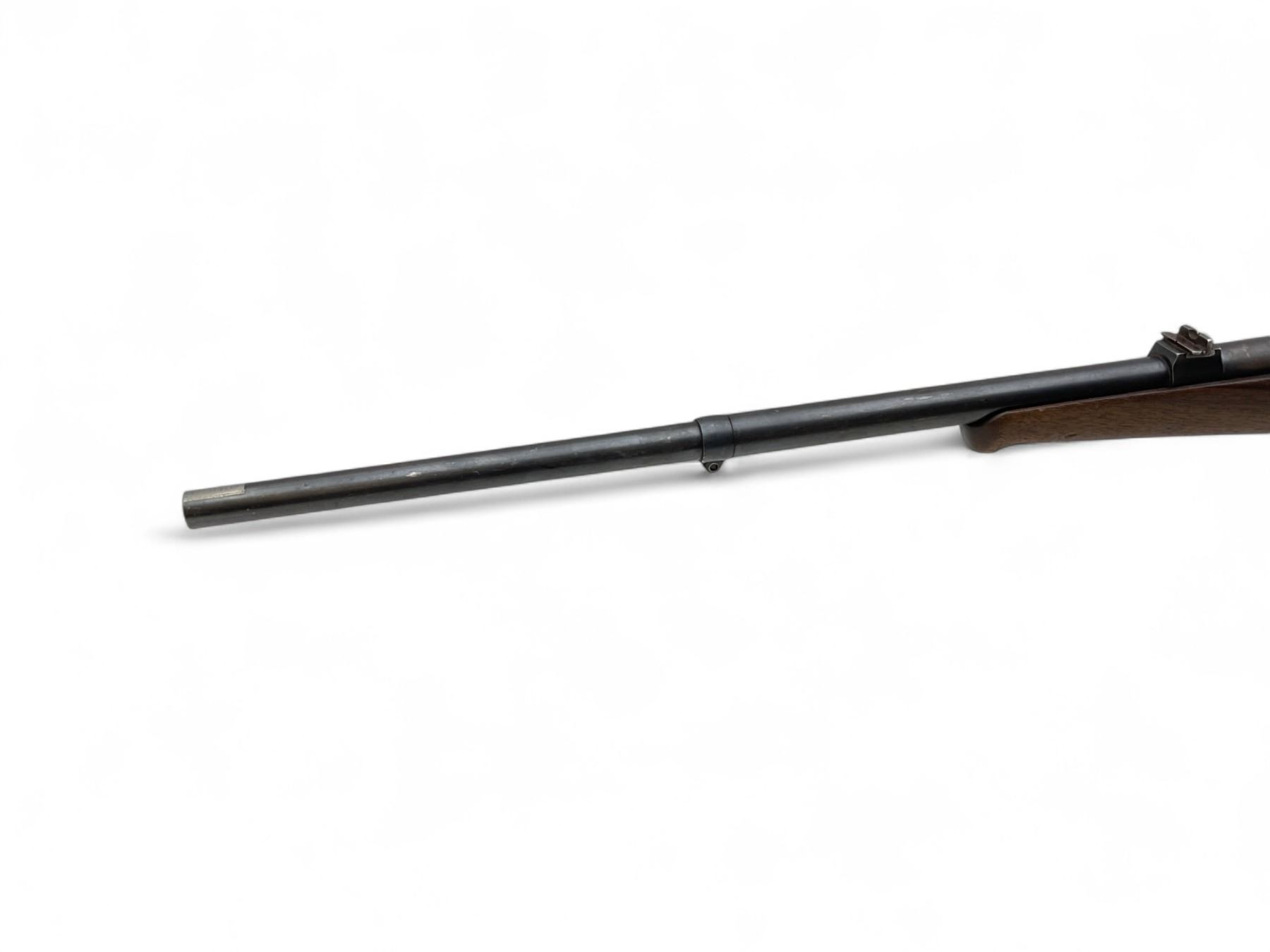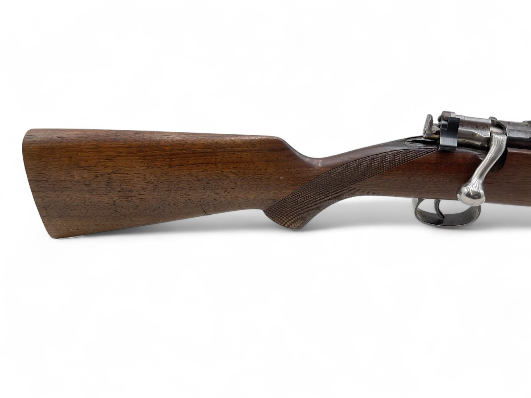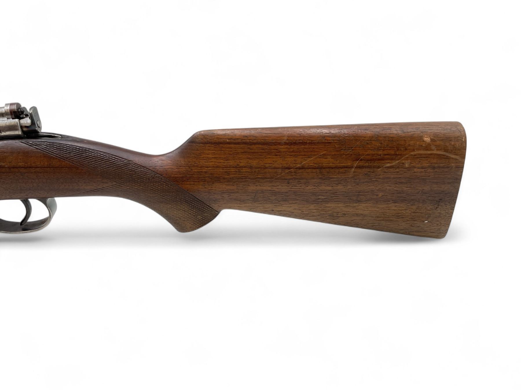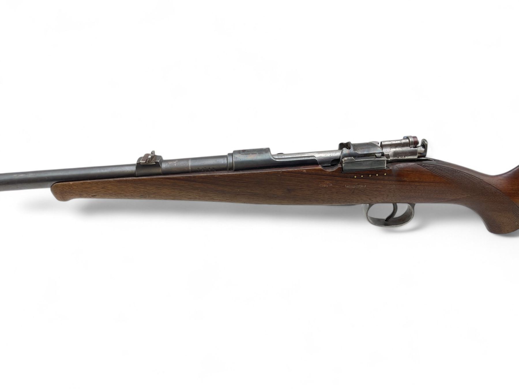 Husqvarna M96 Bolt Action Rifle 6.5X55 22" Barrel Wood Stock. Front sight missing, rear sight present. Internal magazine with base plate. Receiver drilled and tapped. Bolt will not open all the way and trigger will not release. Stock has been repaired on left side near bolt release lever. No butt plate present. This is a non-restricted firearm.