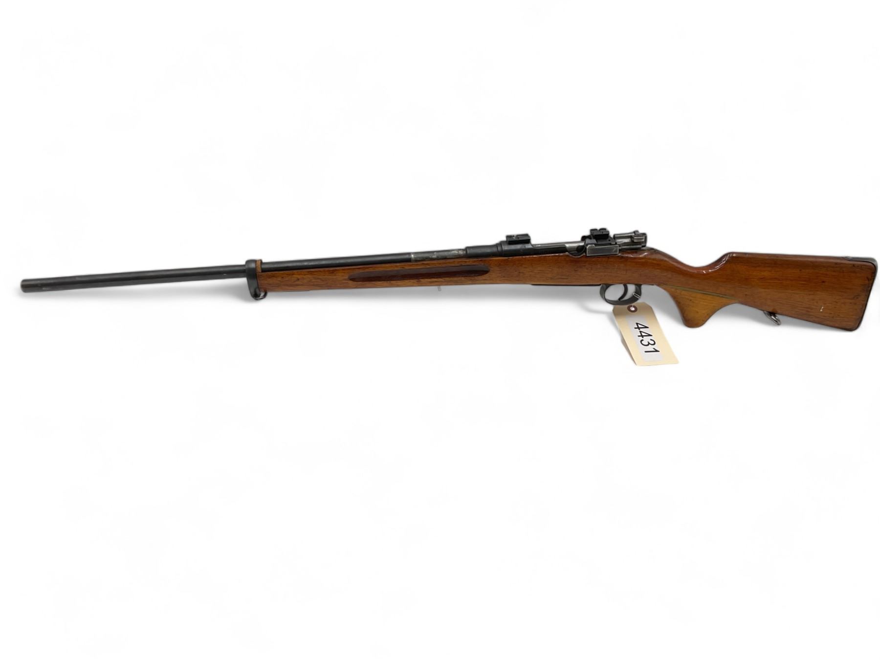 Husqvarna M96 Bolt Action Rifle 6.5X55 25" Barrel Wood Stock. Internal magazine with base plate. Receiver drilled and tapped with bases installed. Custom wood stock with added material. Stock has crack near the receiver on the top. This is a non-restricted firearm.