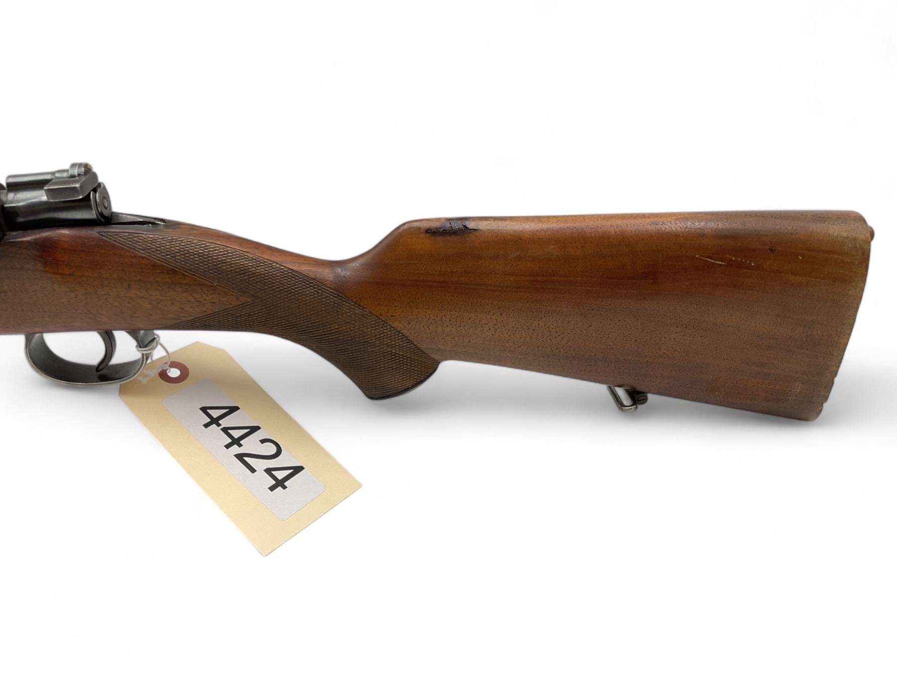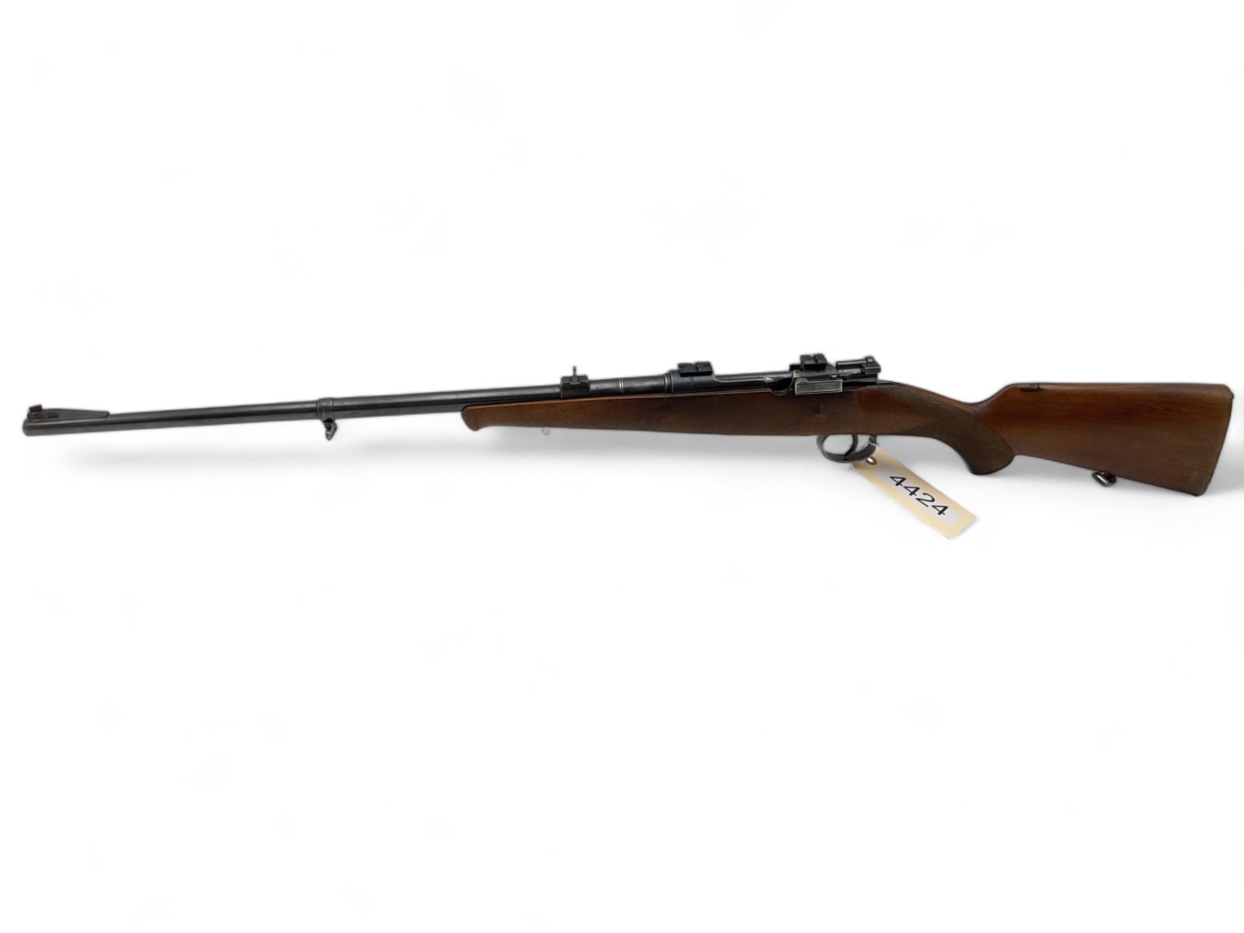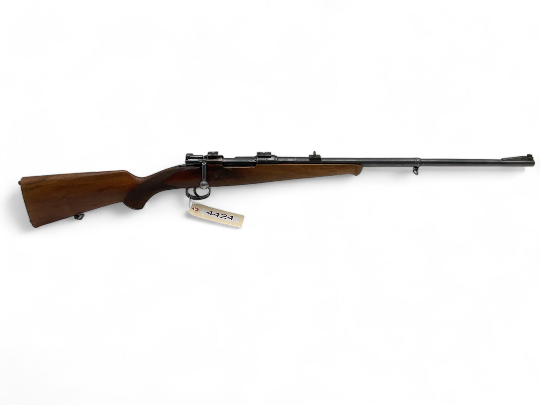 Husqvarna M96 Bolt Action Rifle 9.3X57 24" Barrel Wood Stock. Internal magazine with baseplate, fixed open sights. Receiver drilled and tapped with bases present. No butt pad present; rear stock cracked by receiver. This is a non-restricted firearm.