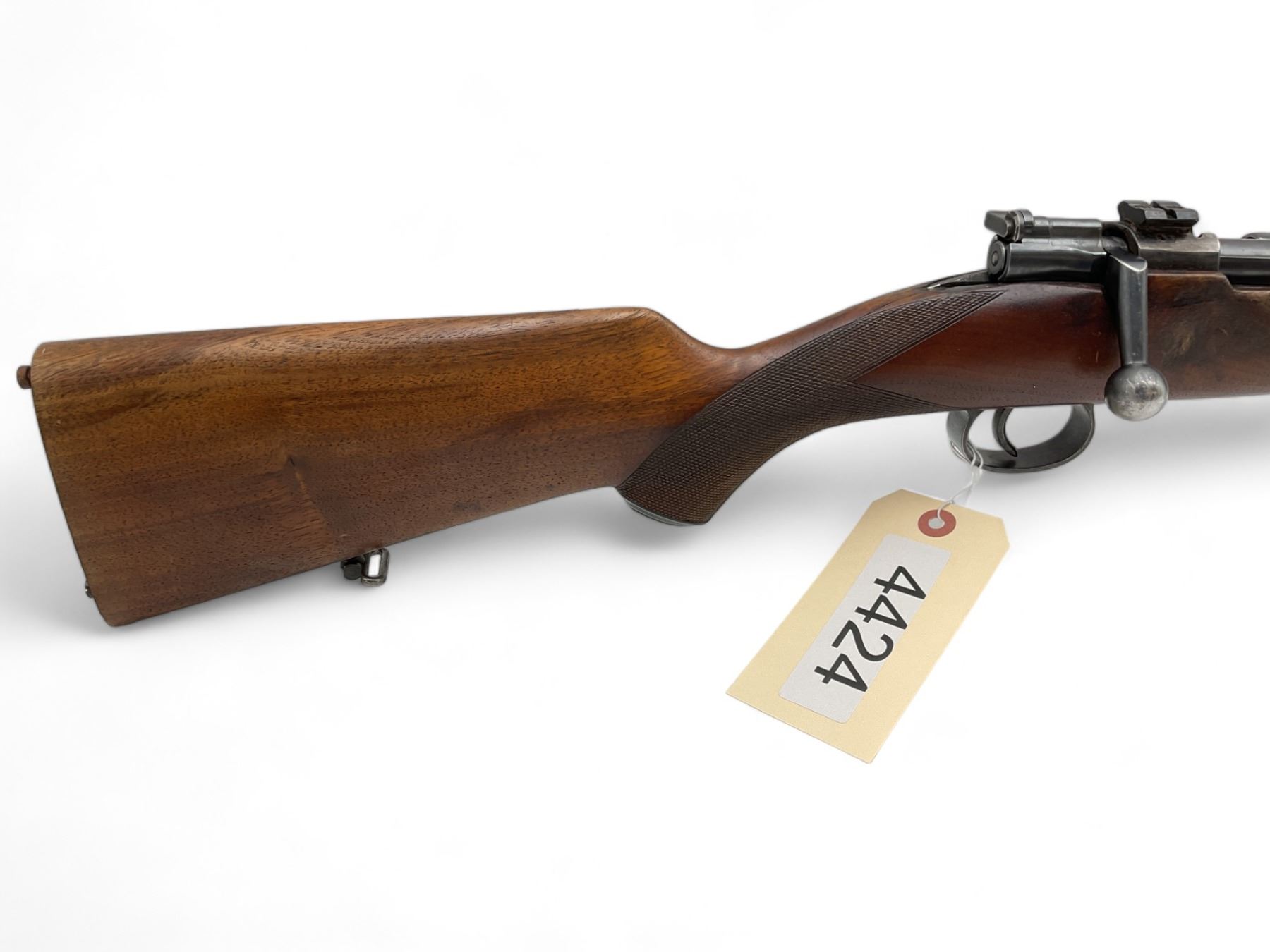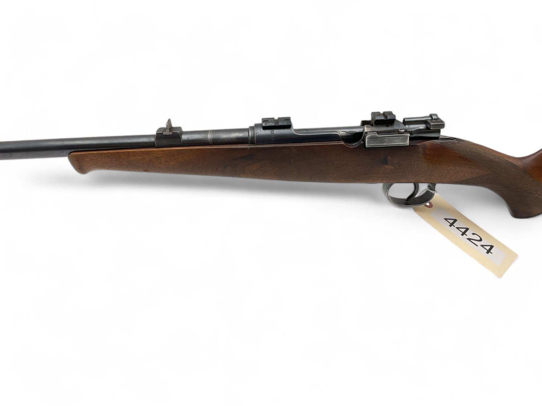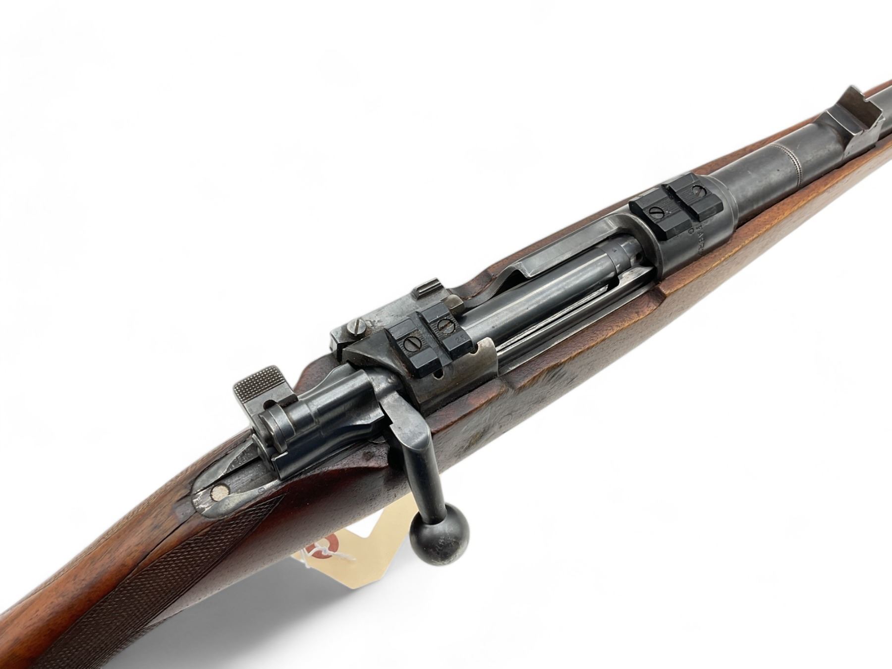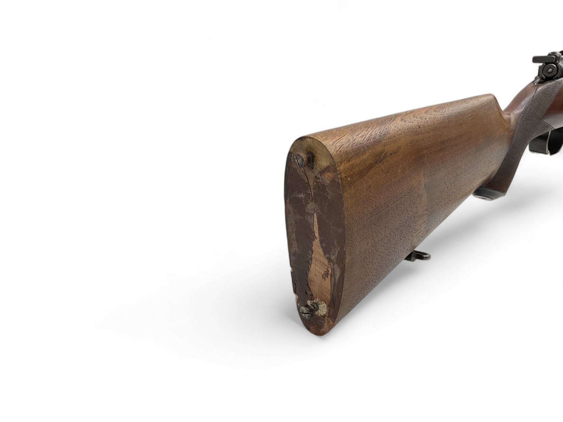 Husqvarna M96 Bolt Action Rifle 9.3X57 24" Barrel Wood Stock. Internal magazine with baseplate, fixed open sights. Receiver drilled and tapped with bases present. No butt pad present; rear stock cracked by receiver. This is a non-restricted firearm.