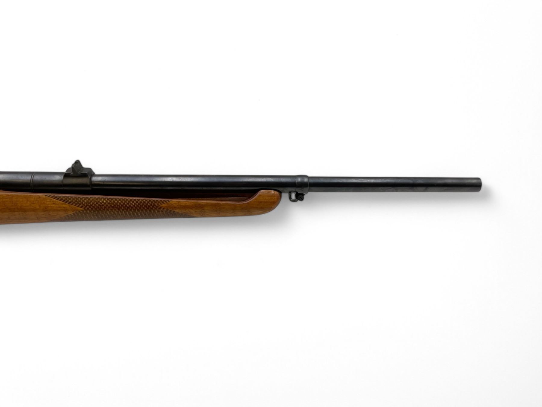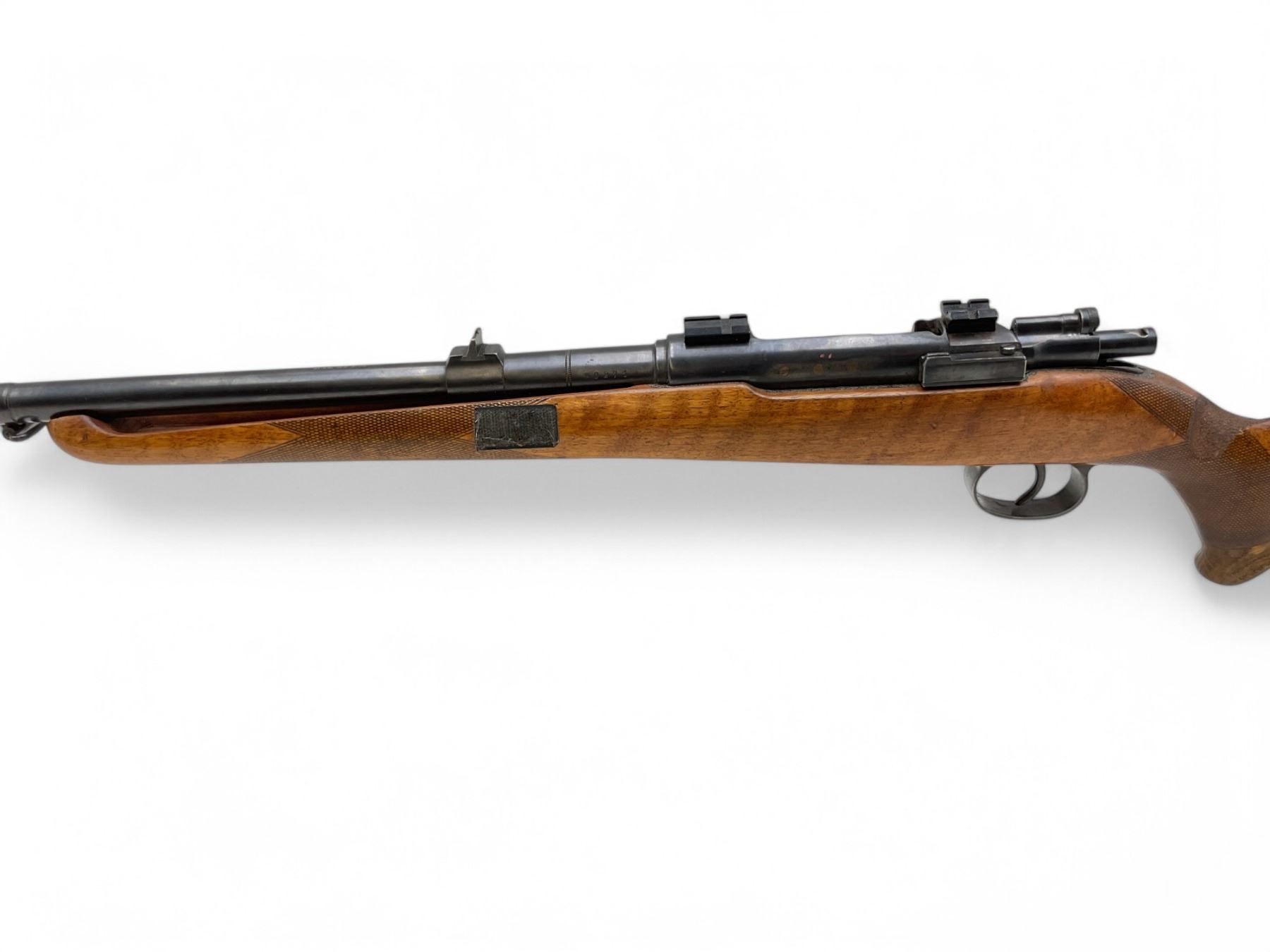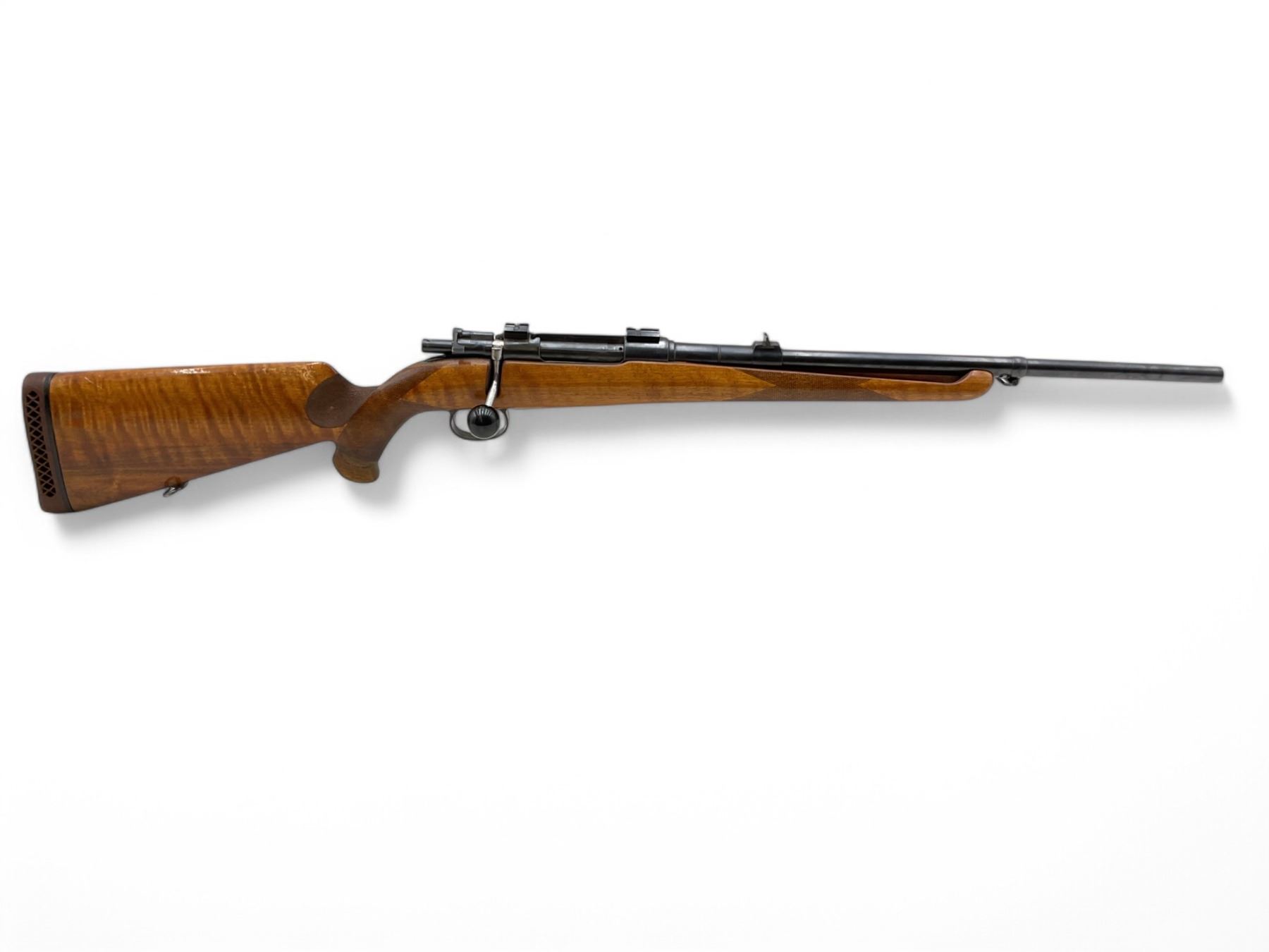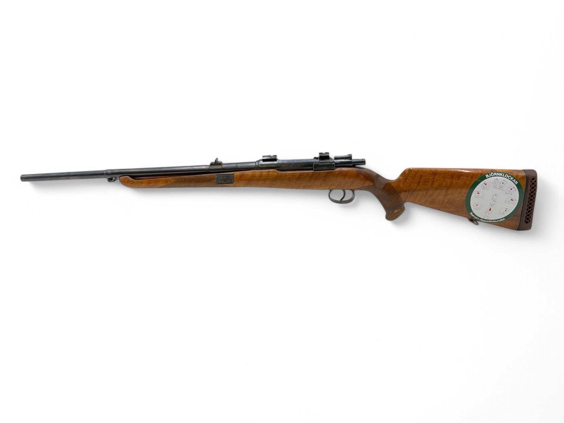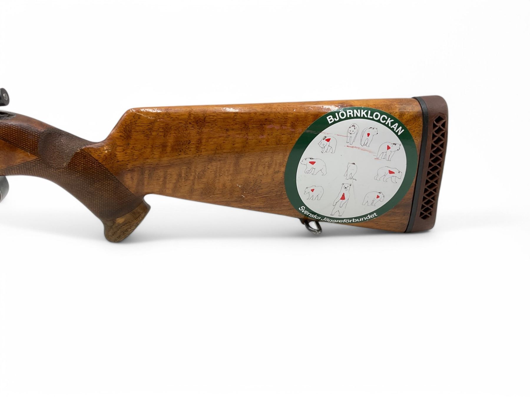Husqvarna M96 Bolt Action Rifle 9.3X62 21" Barrel Wood Stock. Internal magazine with base plate. Fixed rear sight, no front sight. Receiver drilled and tapped with bases installed. Custom wood stock features rubber butt pad. Oversize bolt knob installed on bolt. This is a non-restricted firearm.