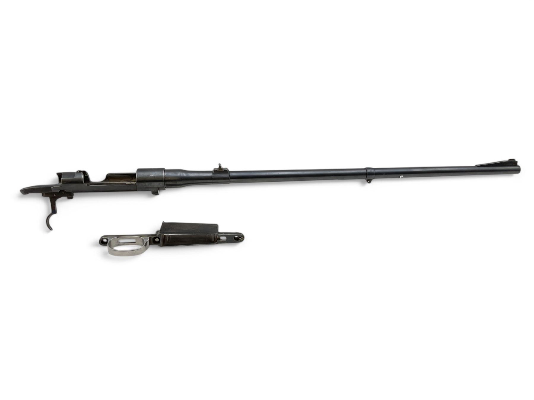 Husqvarna M98 24" Barreled Receiver 9.3X57. Ramp front sight, fixed rear sight. No bolt assembly and no stock. This is a non-restricted firearm.