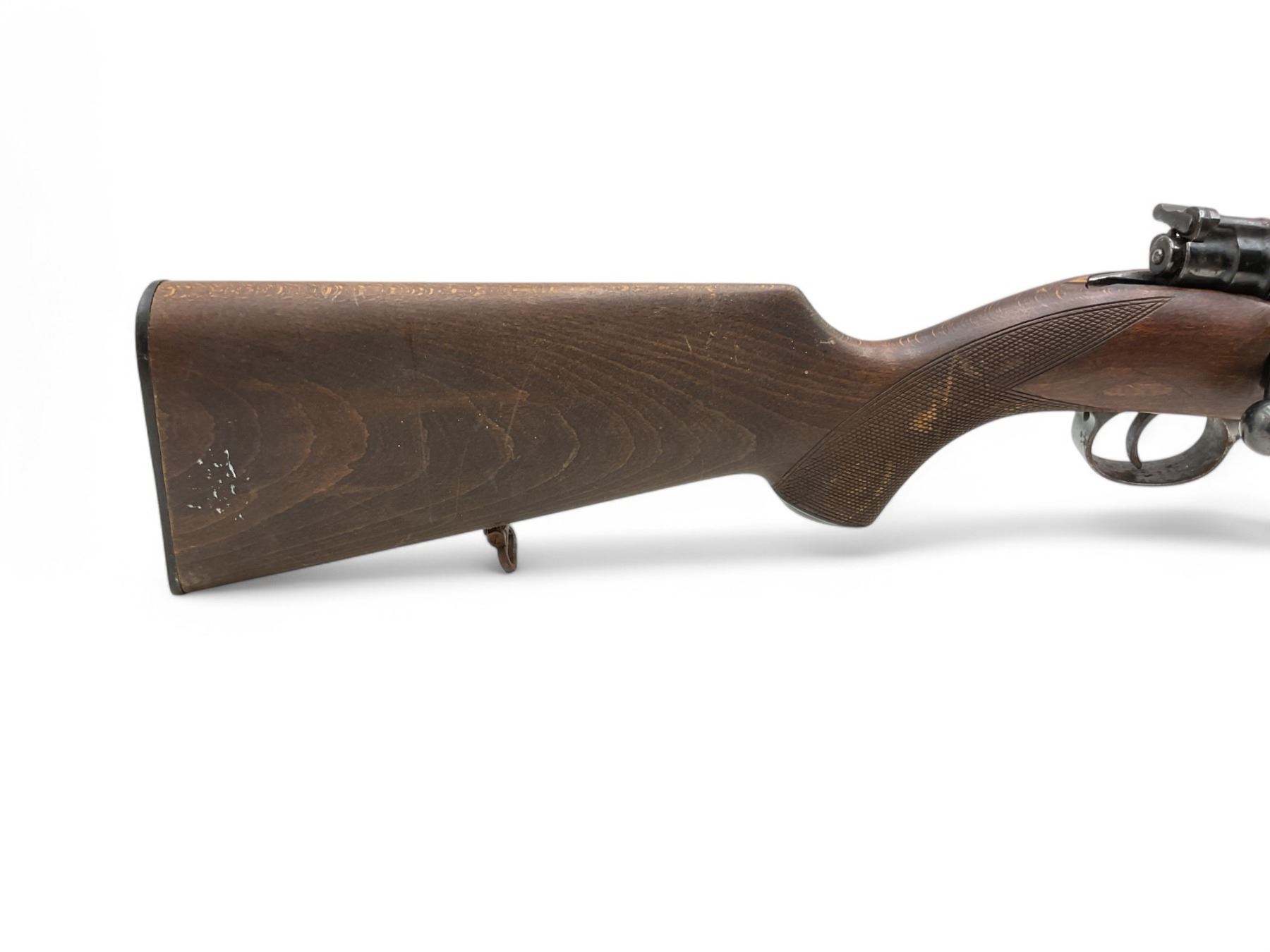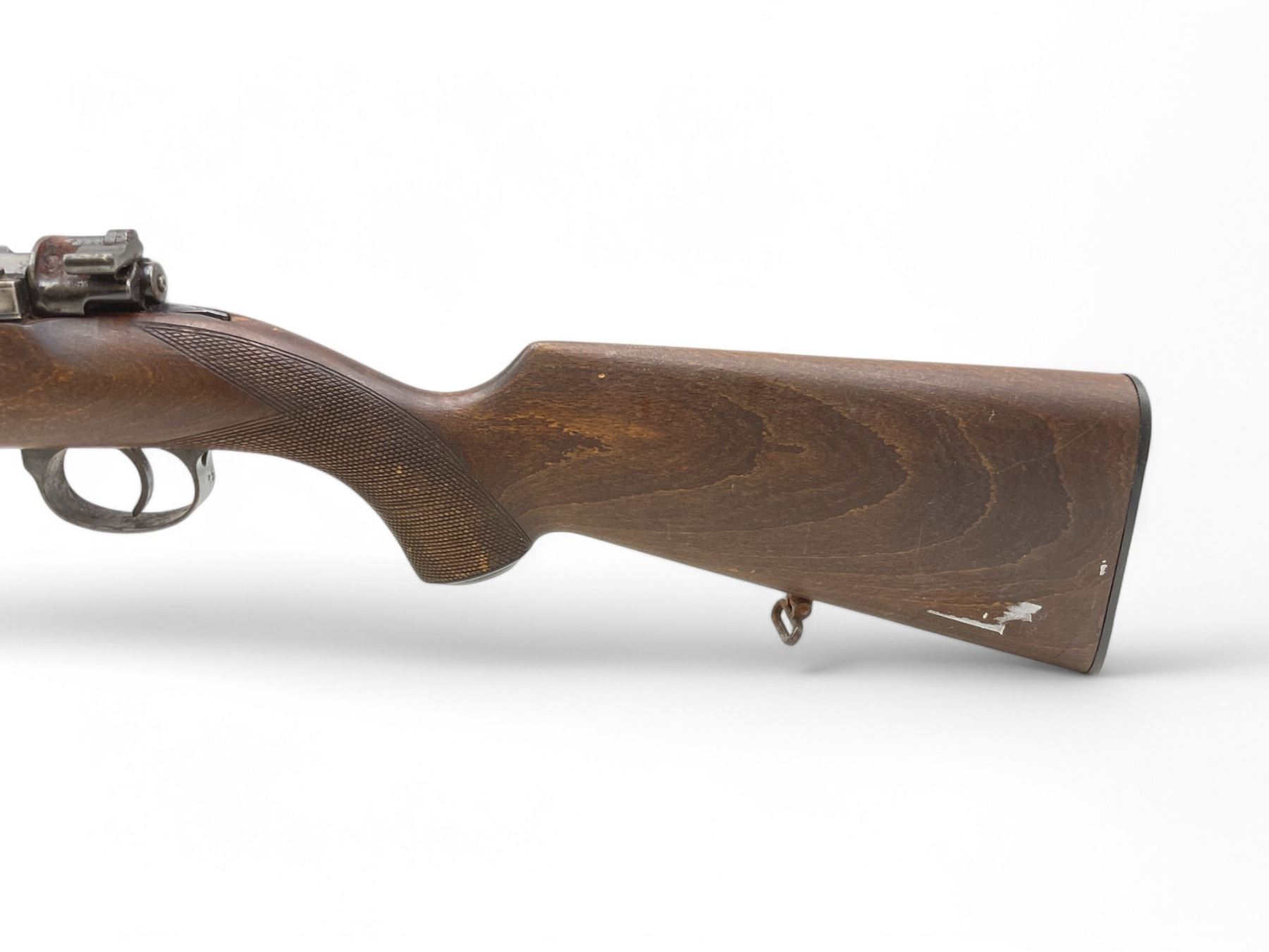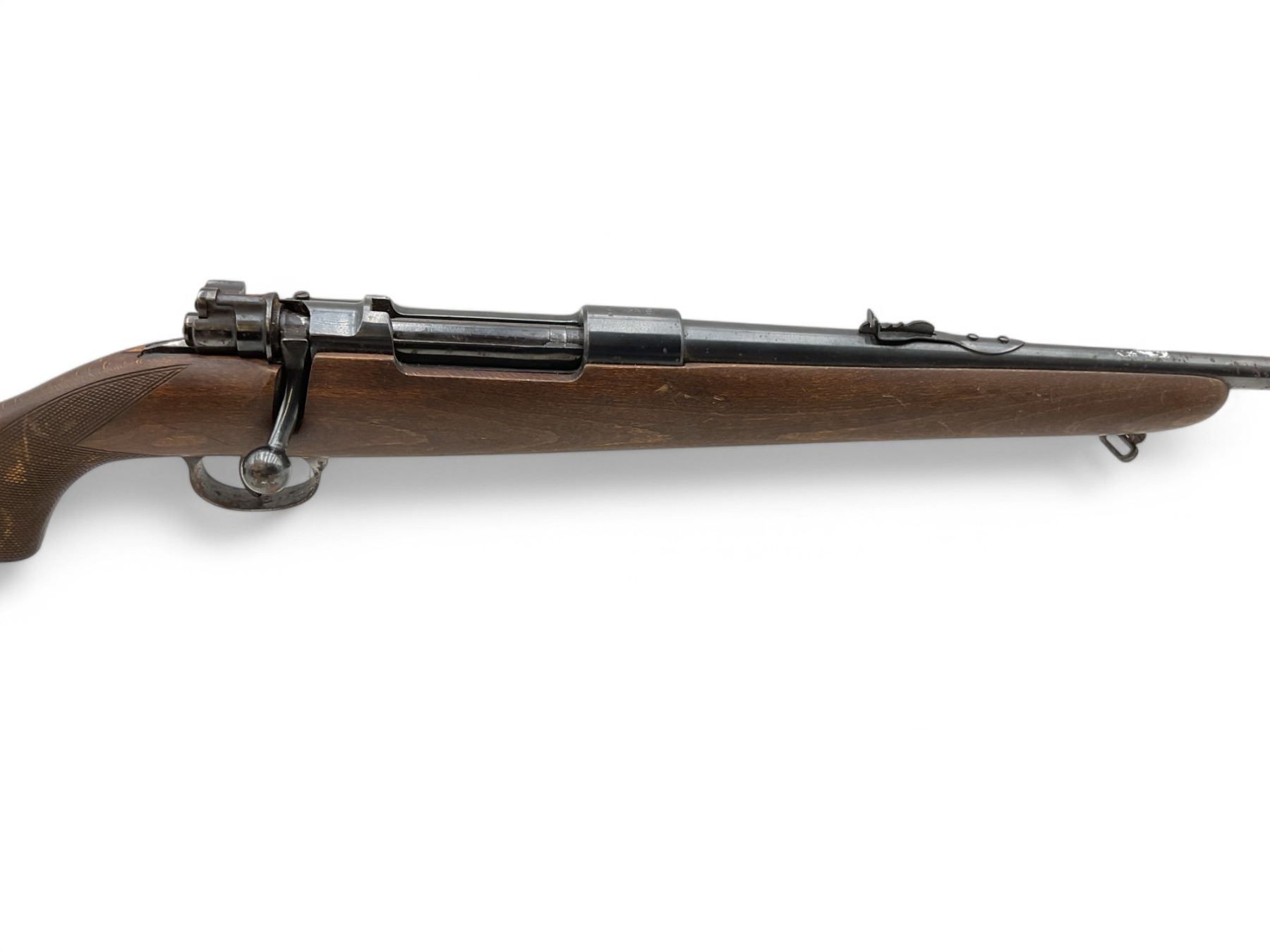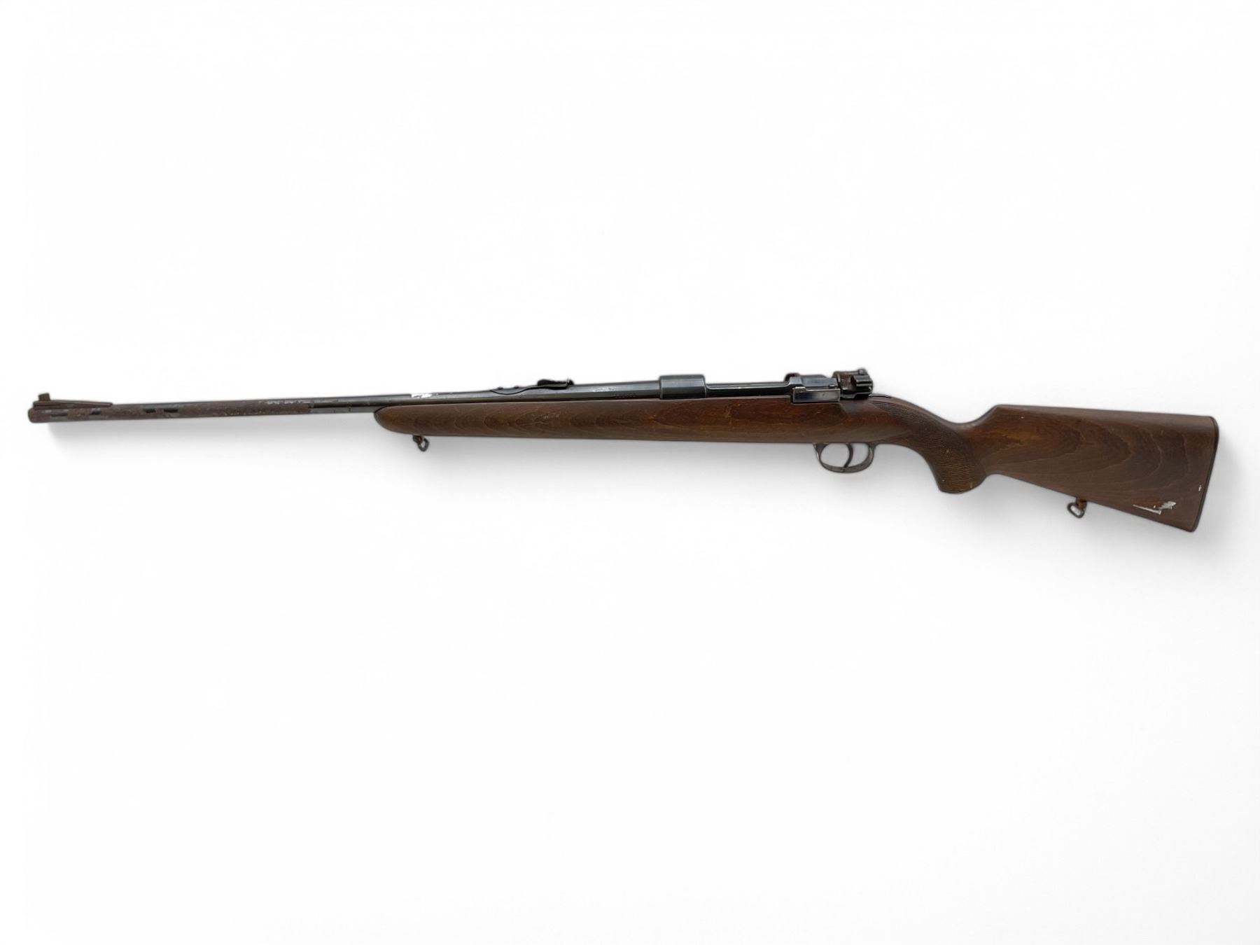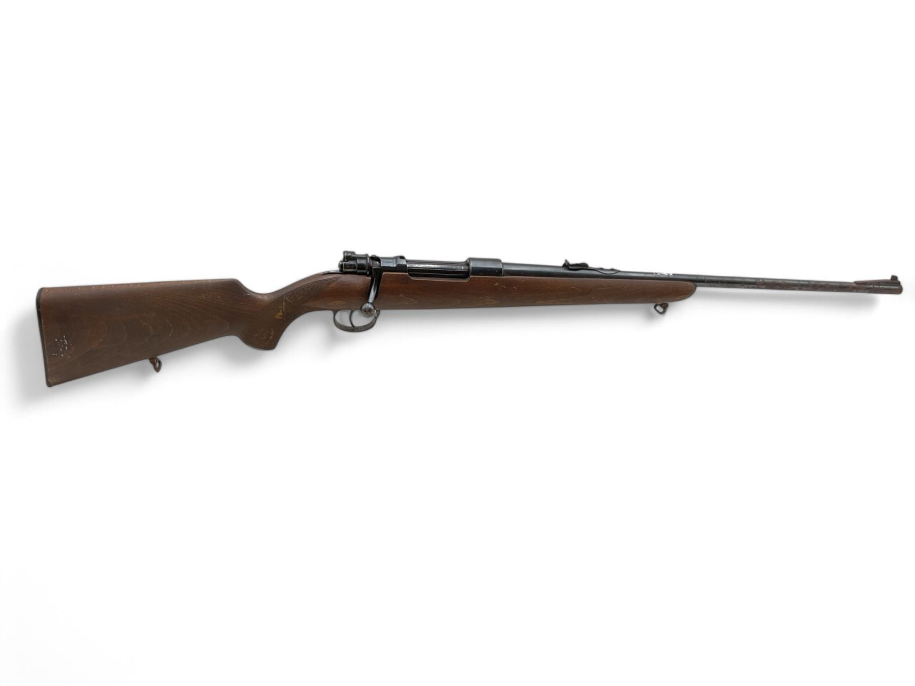 Husqvarna M98 Bolt Action Rifle 8X57JS 24" Barrel Wood Stock. Internal magazine and base plate assembly missing; rust present throughout firearm. Fixed front sight, adjustable rear sight. This is a non-restricted firearm.