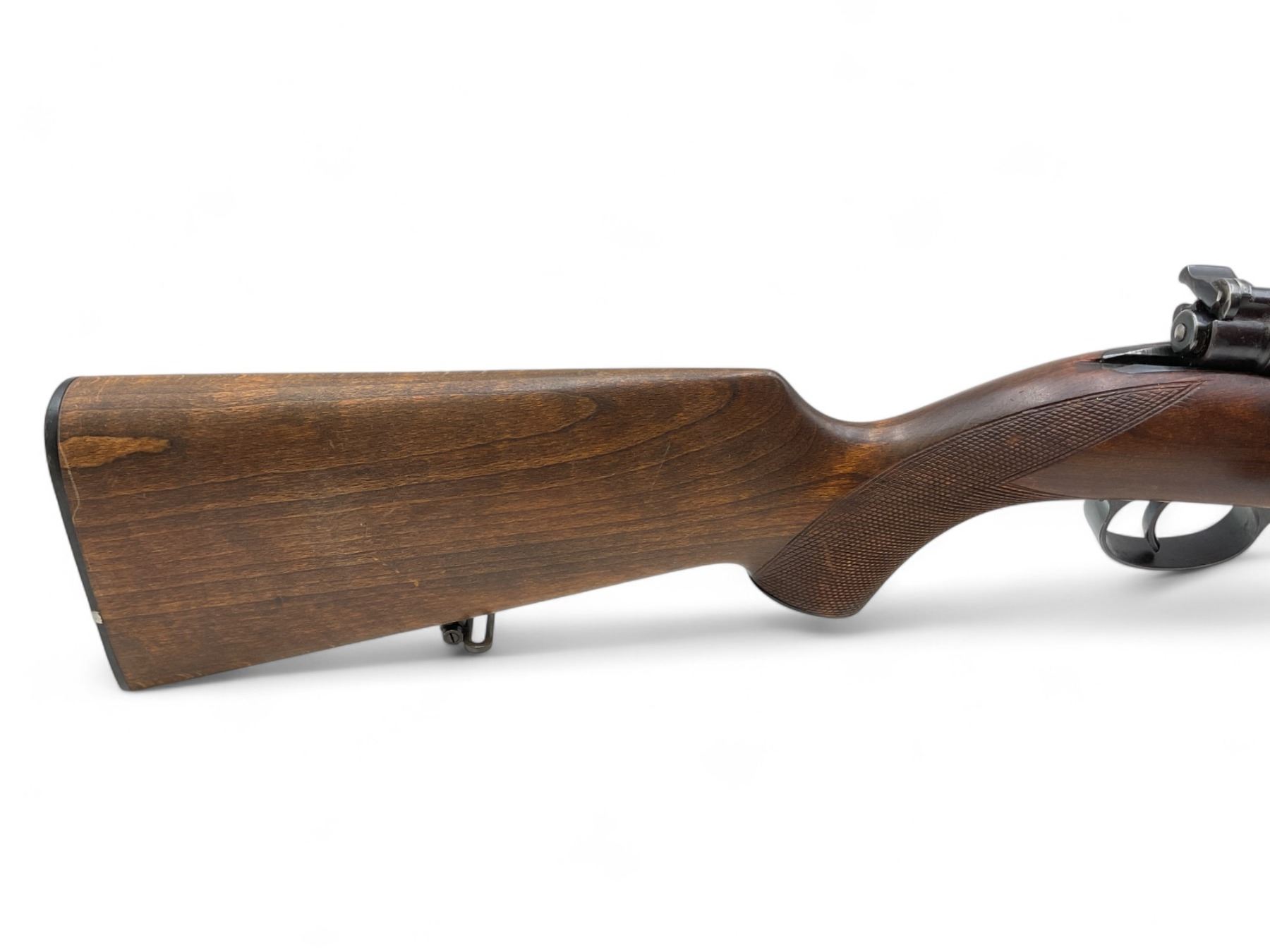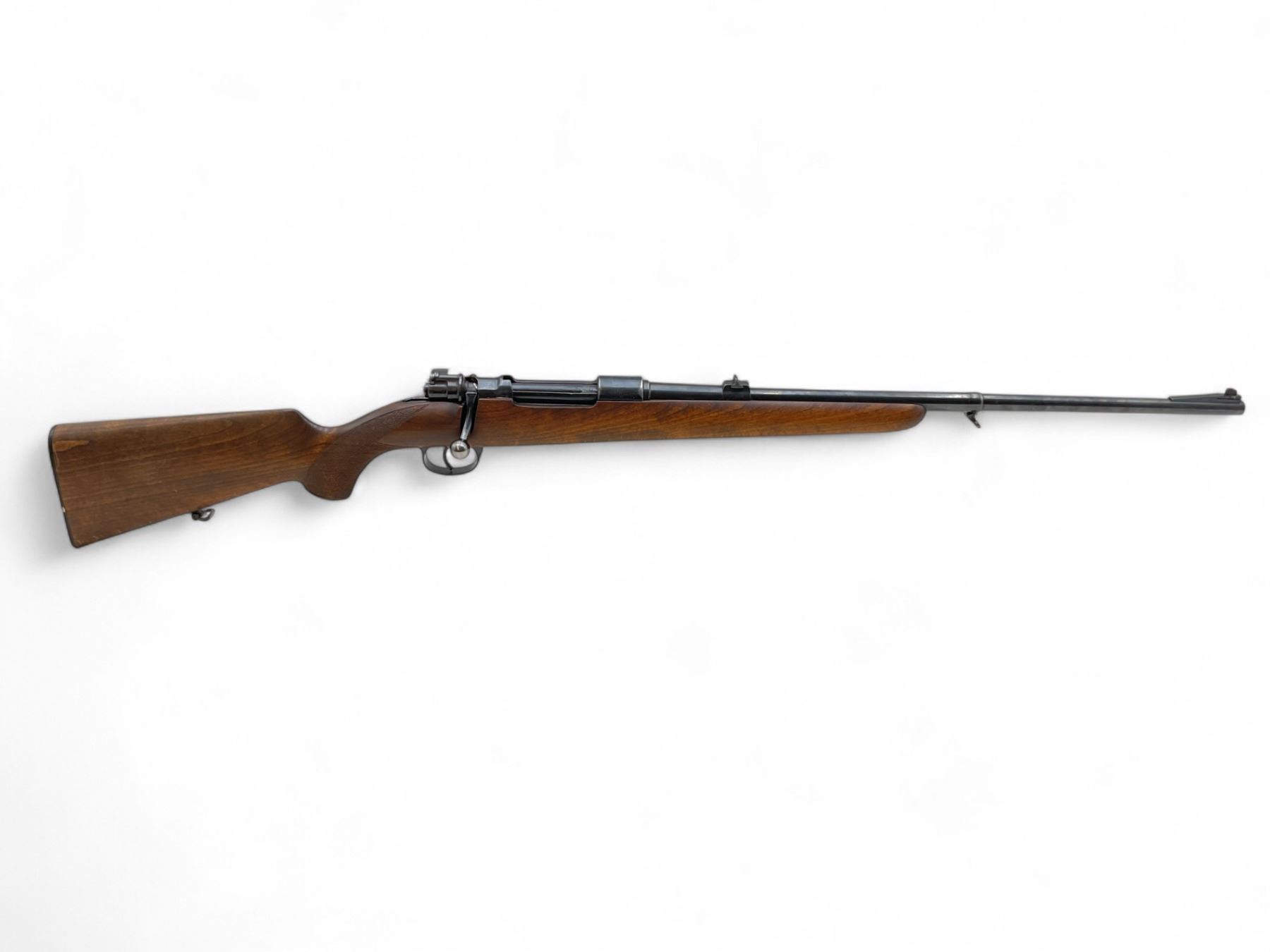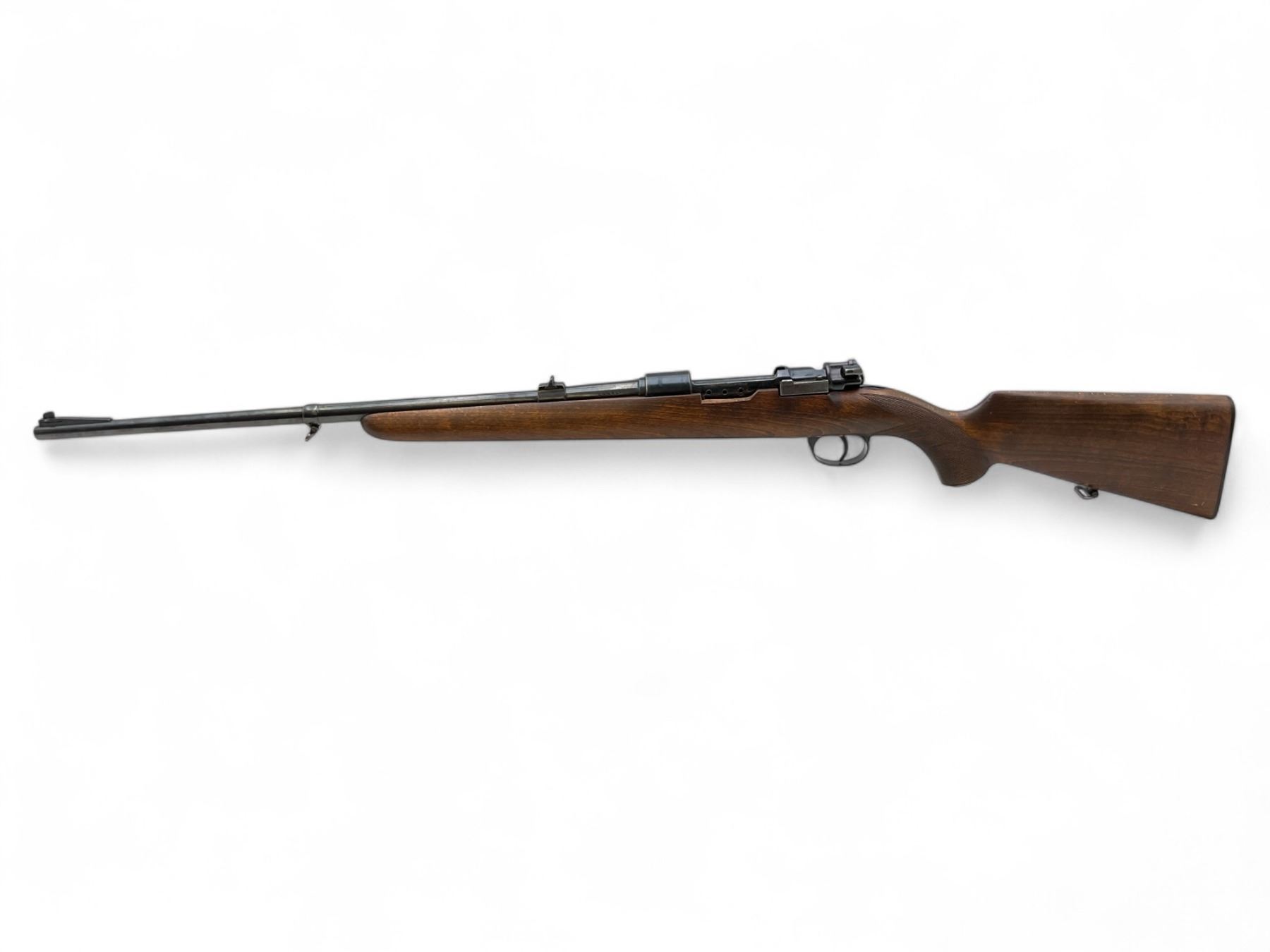 Husqvarna M98 Bolt Action Rifle 8X57JS 24" Barrel Wood Stock. Ramp front sight, fixed rear sight. Internal magazine with base plate. Receiver has been drilled and tapped on side. This is a non-restricted firearm.