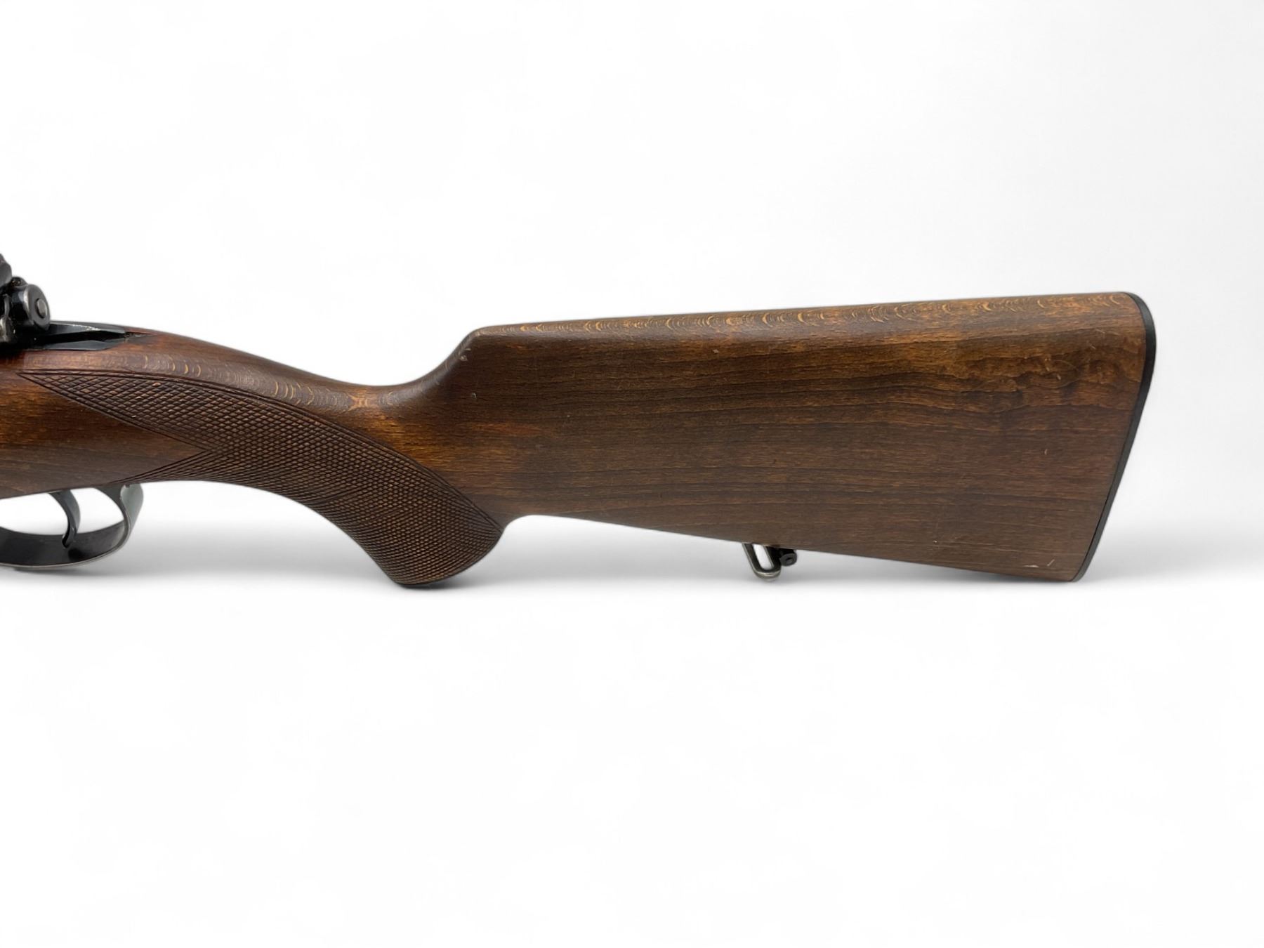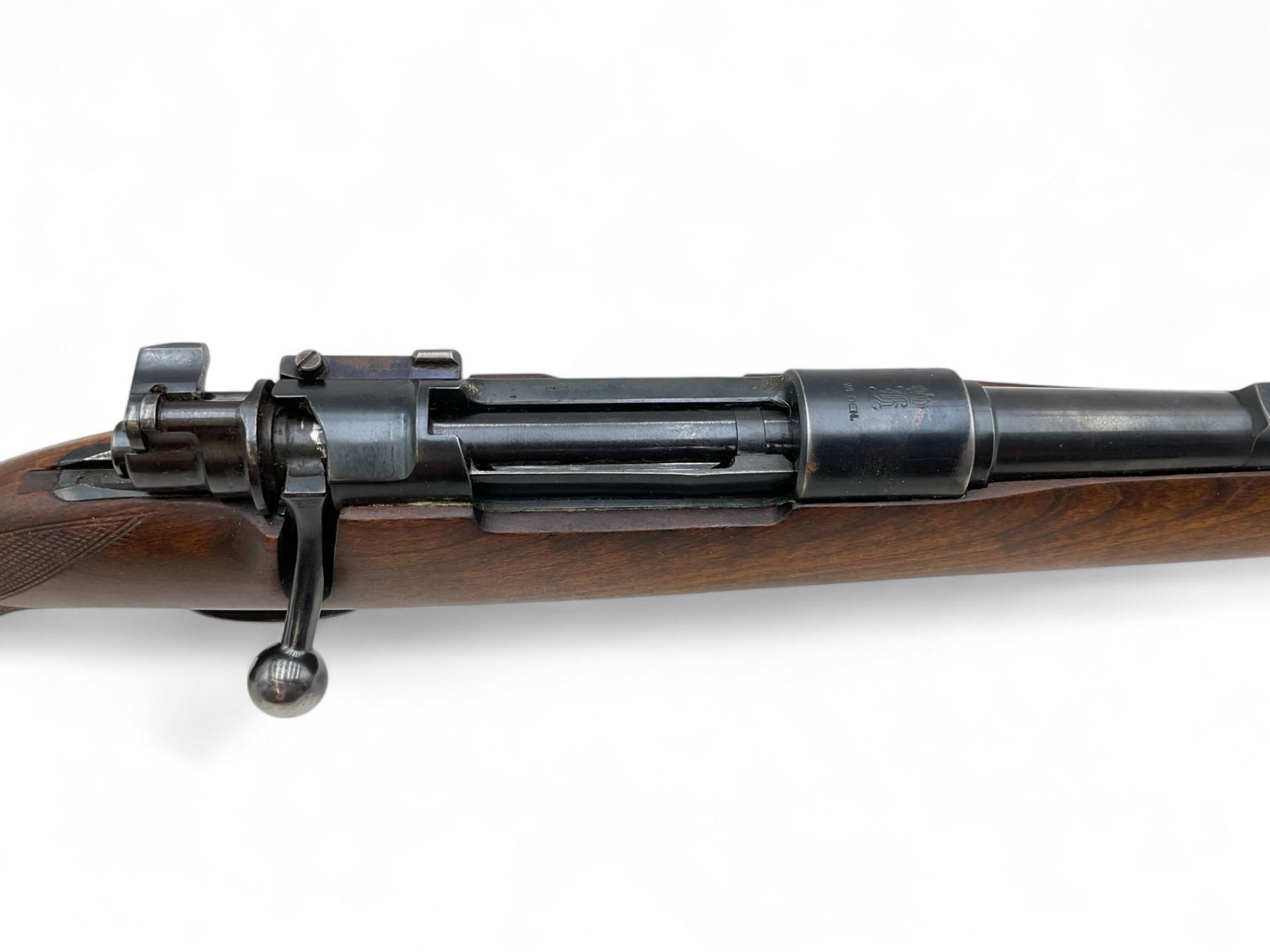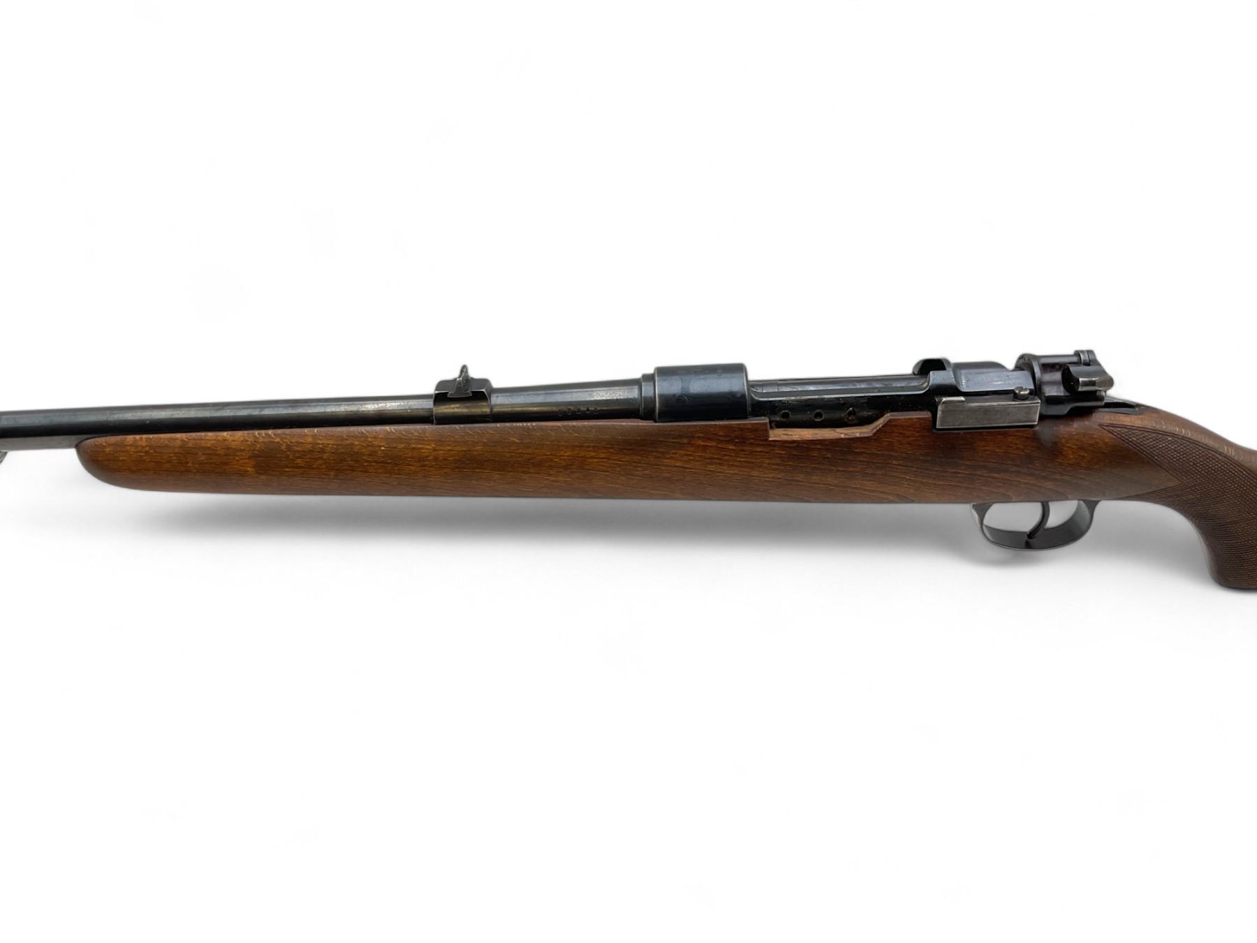 Husqvarna M98 Bolt Action Rifle 8X57JS 24" Barrel Wood Stock. Ramp front sight, fixed rear sight. Internal magazine with base plate. Receiver has been drilled and tapped on side. This is a non-restricted firearm.