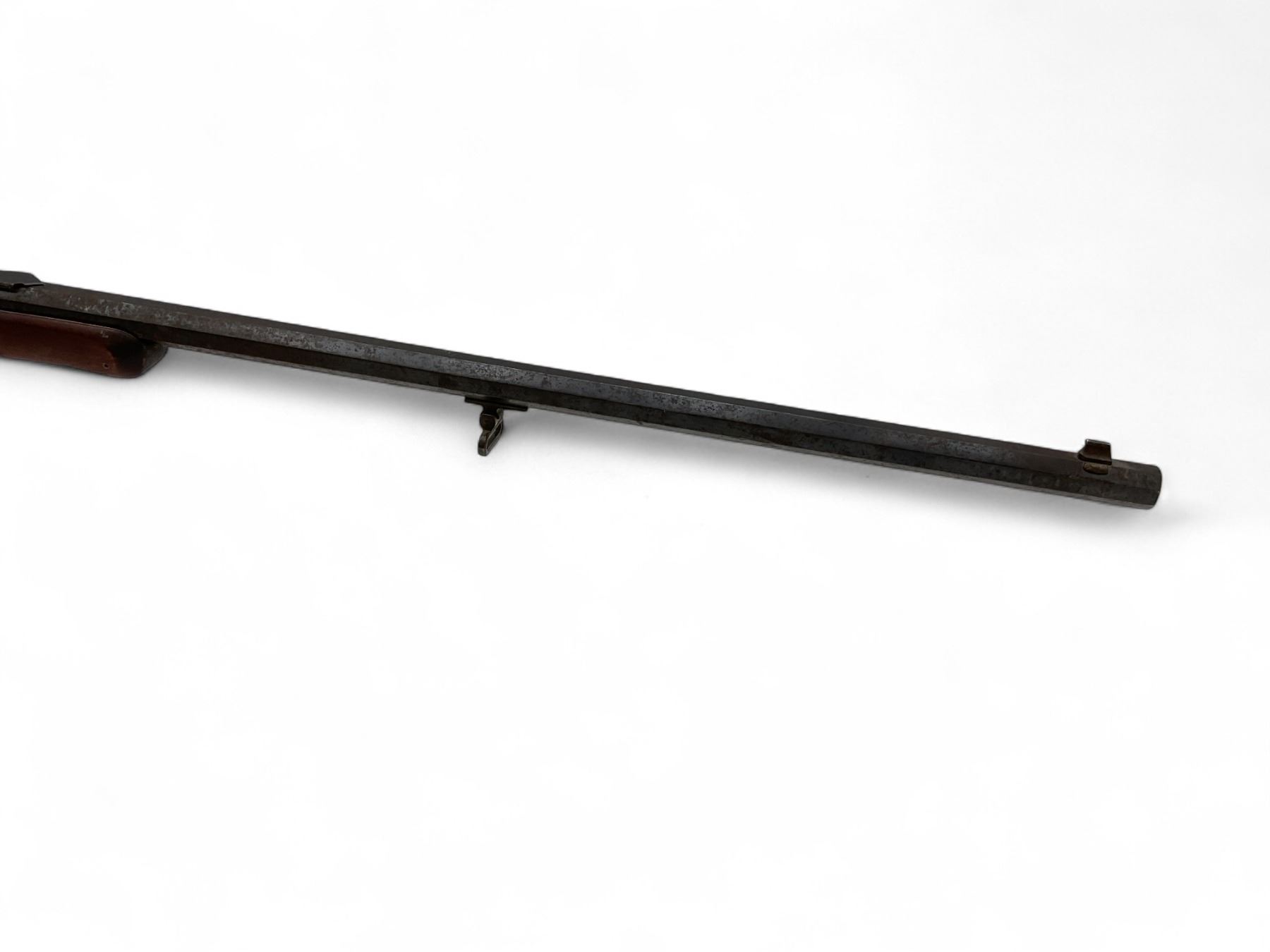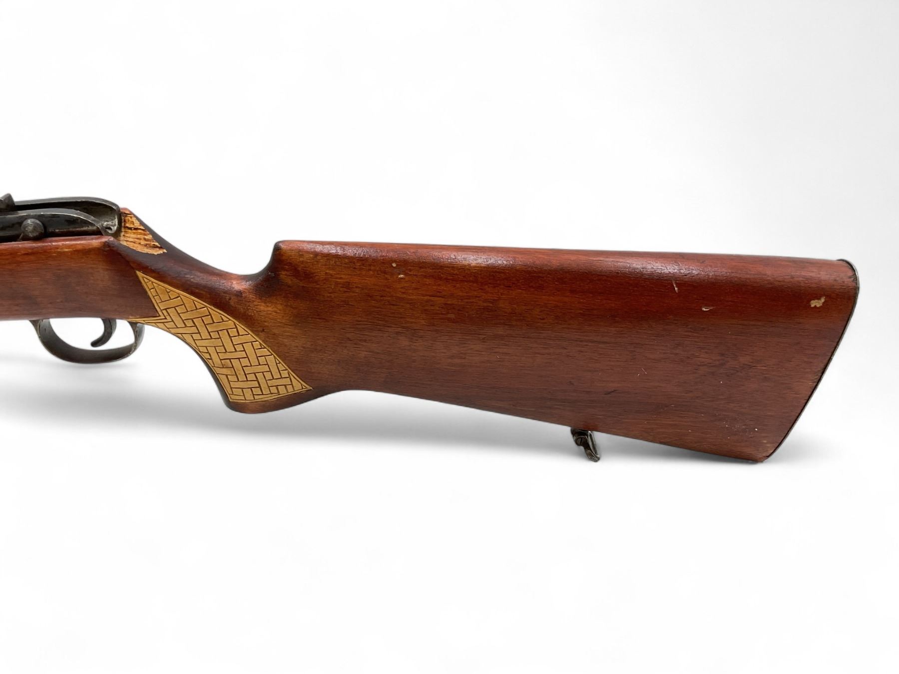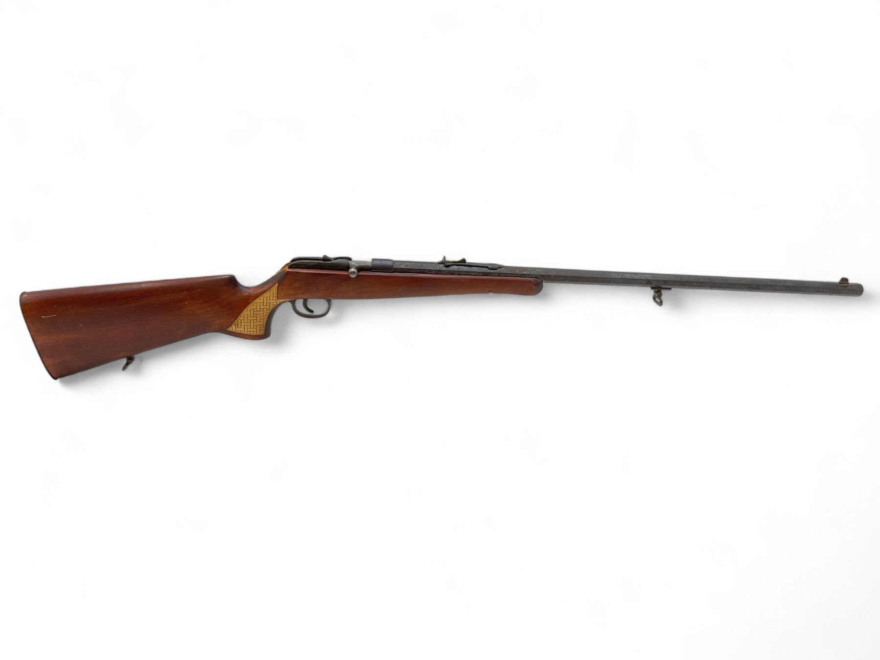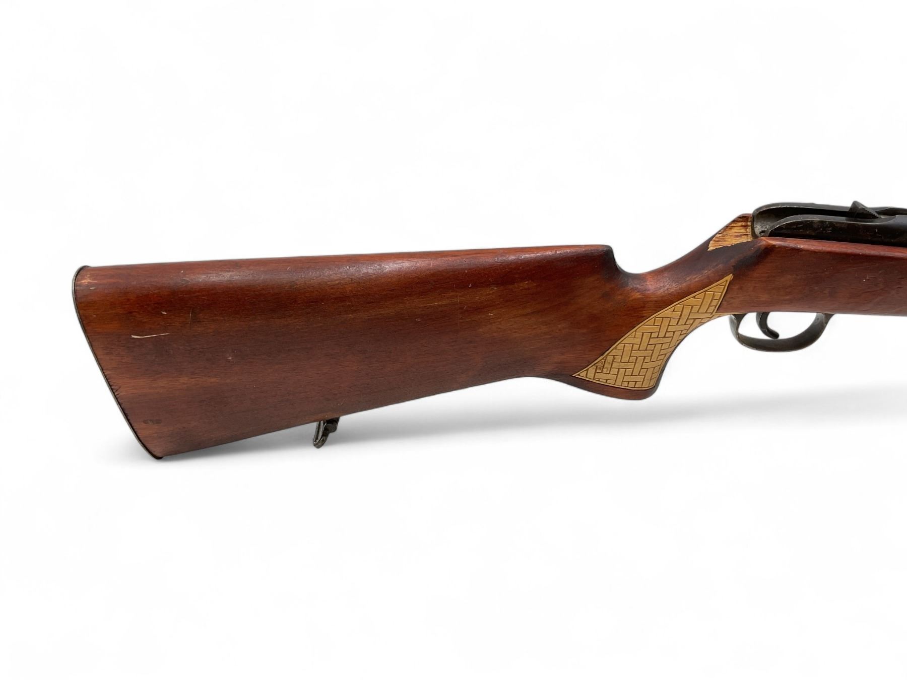Husqvarna Model 55 Single Shot Rifle 5.6X15R (22LR) 24" Octagon Barrel Wood Stock. Fixed front sight, adjustable rear sight. Wood stock broke at rear of receiver. This is a non-restricted firearm.