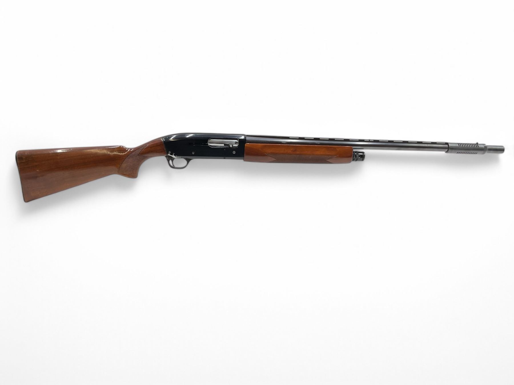 Husqvarna Semi Auto Shotgun 12Ga 2.75" Chamber 23" Barrel Wood Stock. Adjustable choke installed on barrel; vent rib with bead sight. Charging handle missing; left side rear receiver bottom has been ground slightly. This is a non-restricted firearm.
