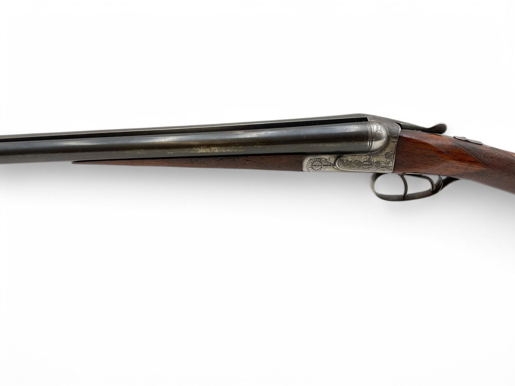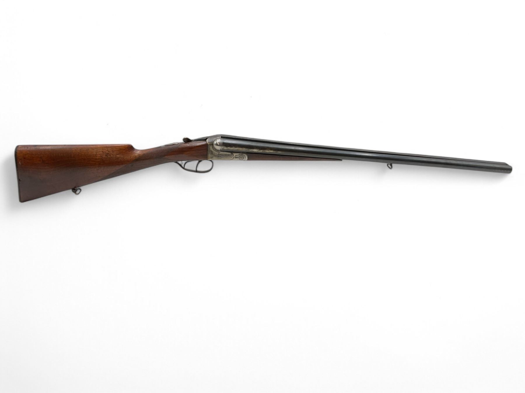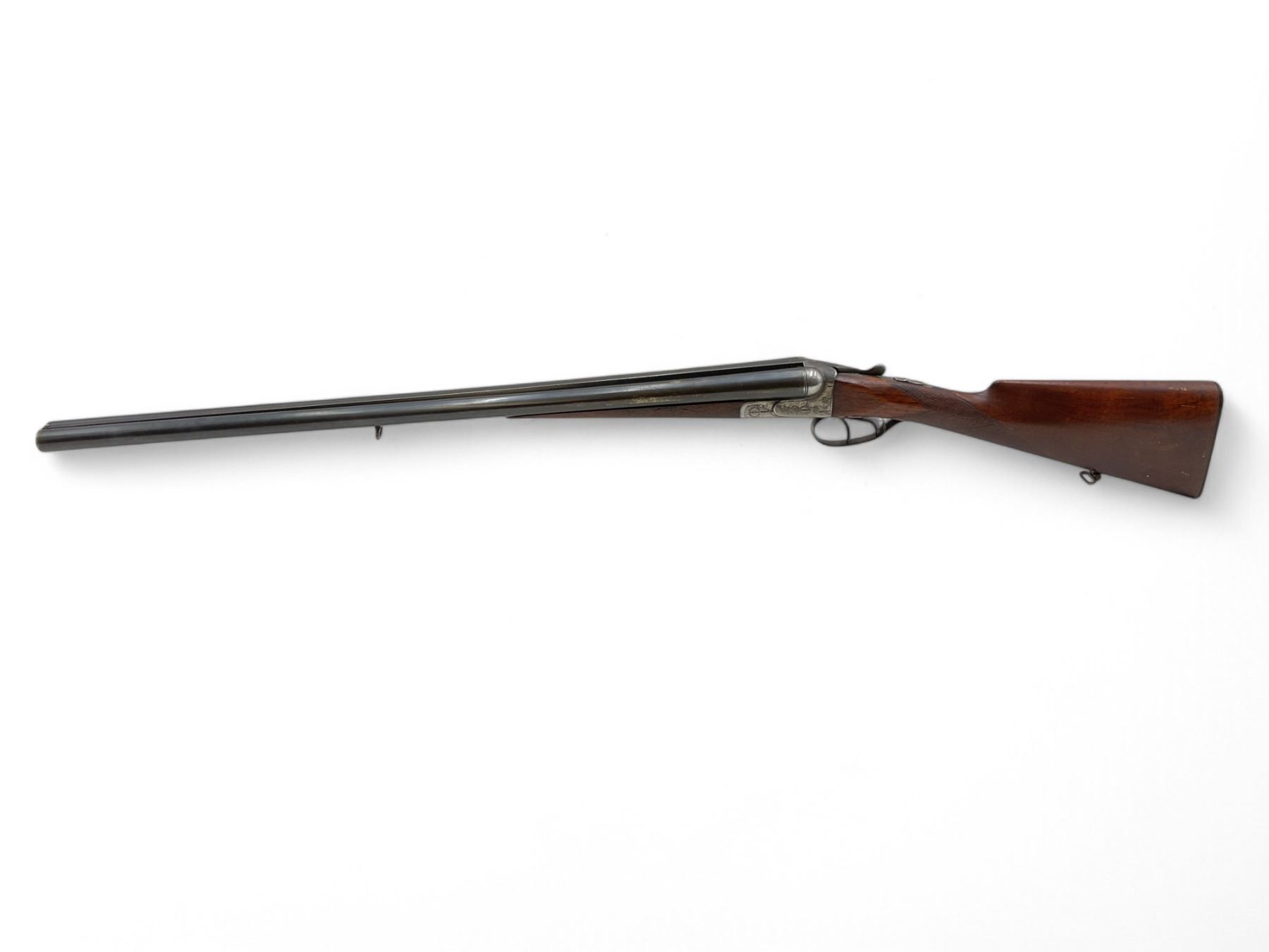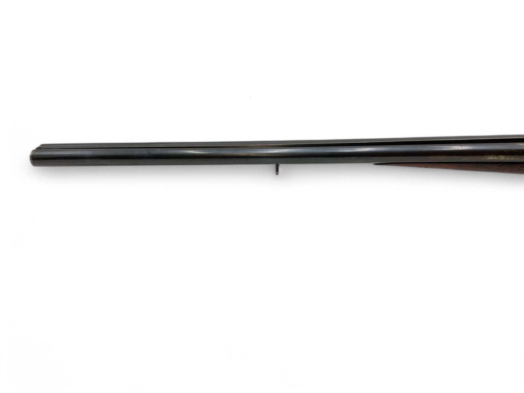 Husqvarna Side By Side Shotgun 12Ga 2.75" Chambers 30" Barrels Wood Stock. Fixed chokes; bead sight. Double triggers; plastic butt plate. This is a non-restricted firearm.