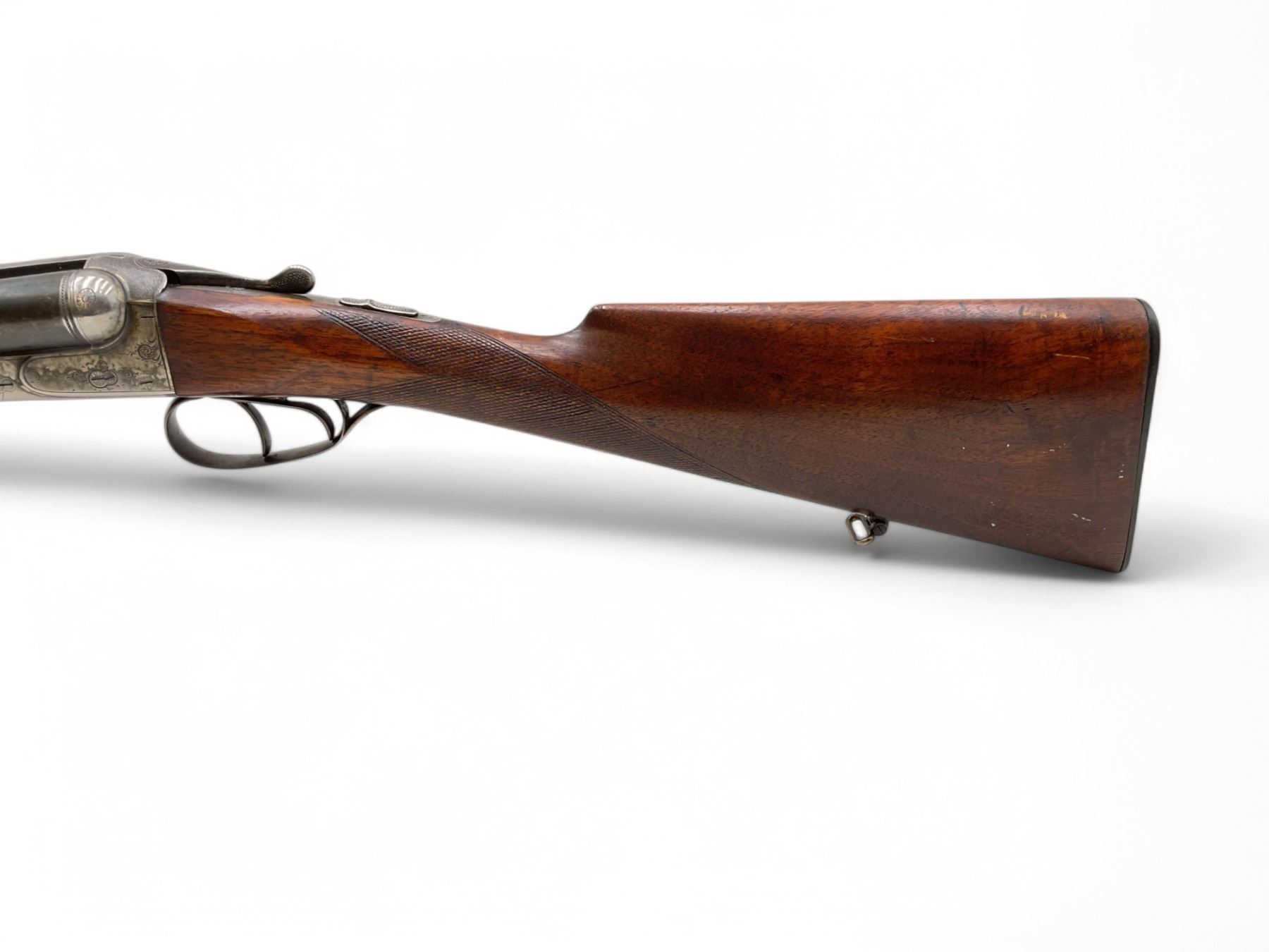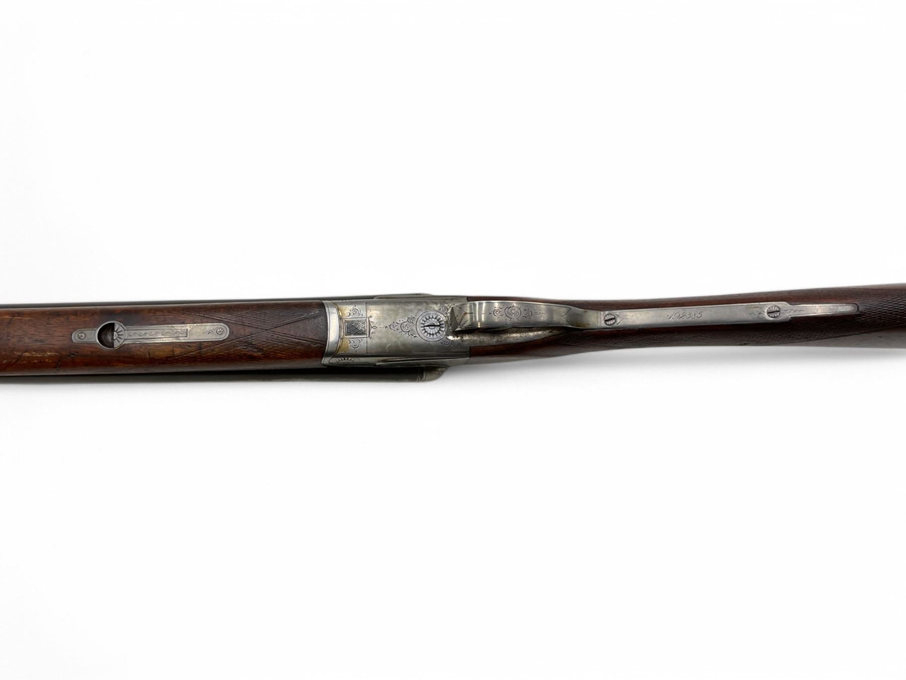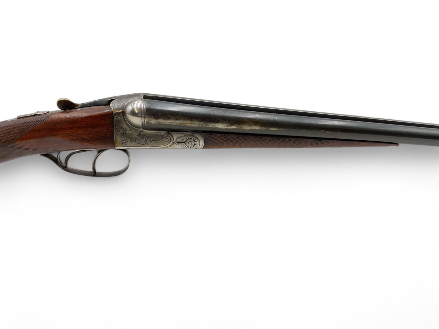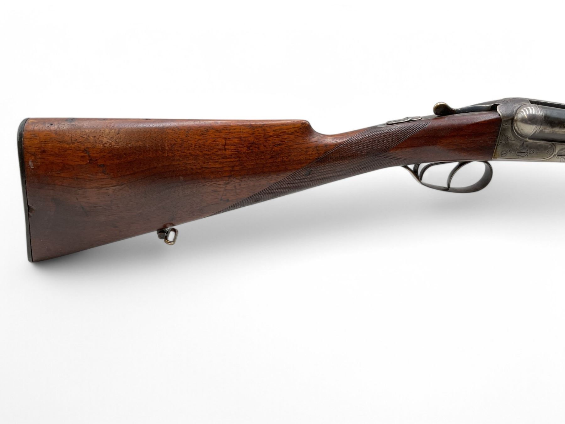 Husqvarna Side By Side Shotgun 12Ga 2.75" Chambers 30" Barrels Wood Stock. Fixed chokes; bead sight. Double triggers; plastic butt plate. This is a non-restricted firearm.