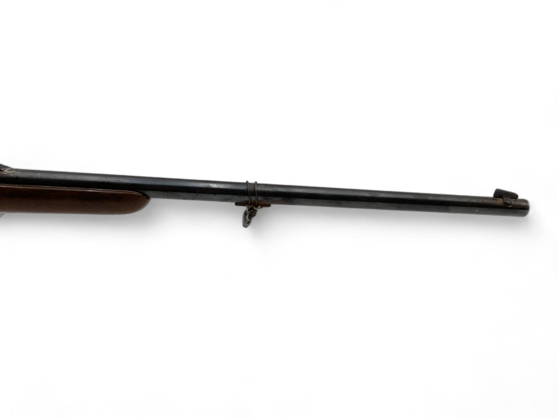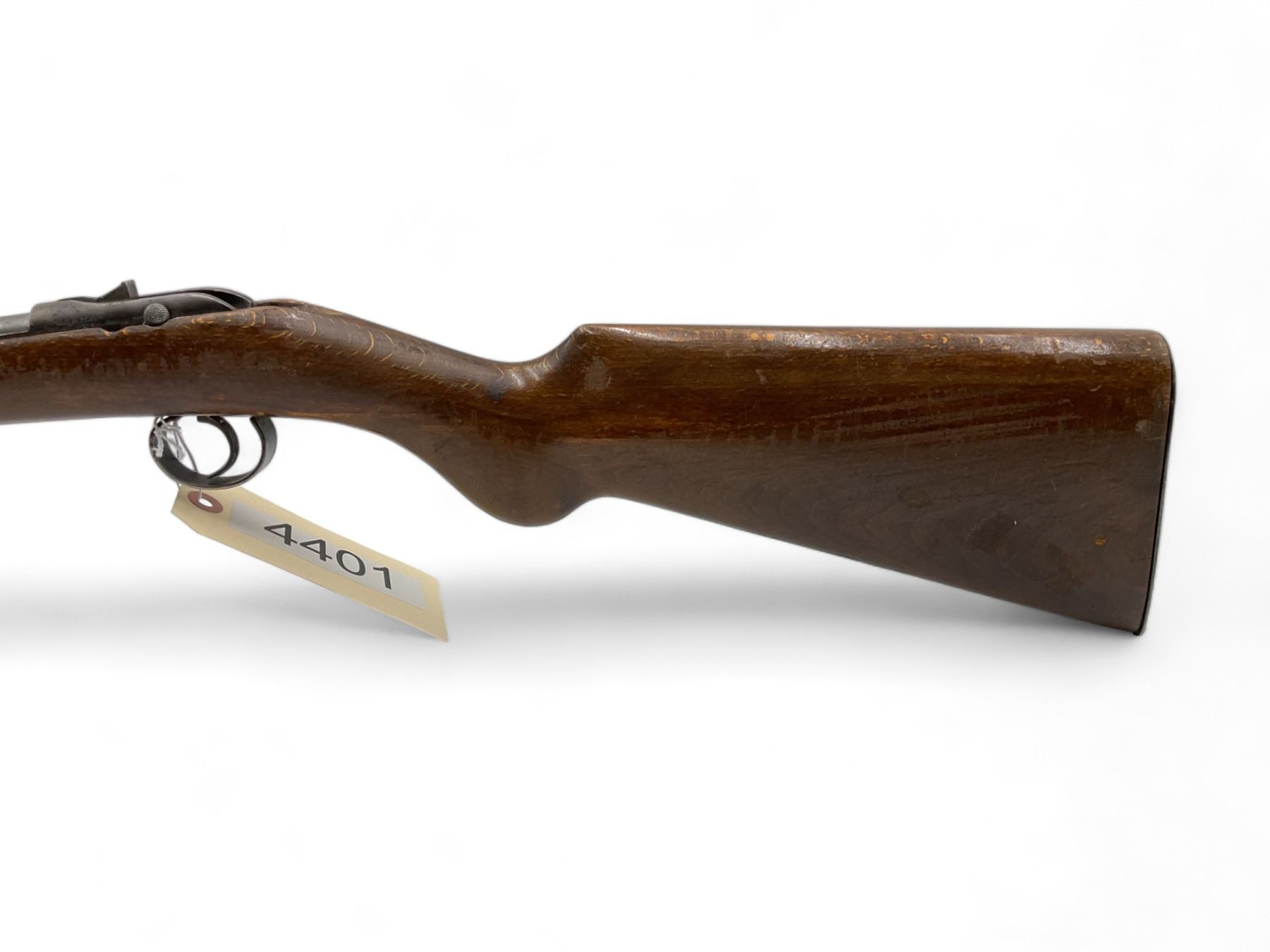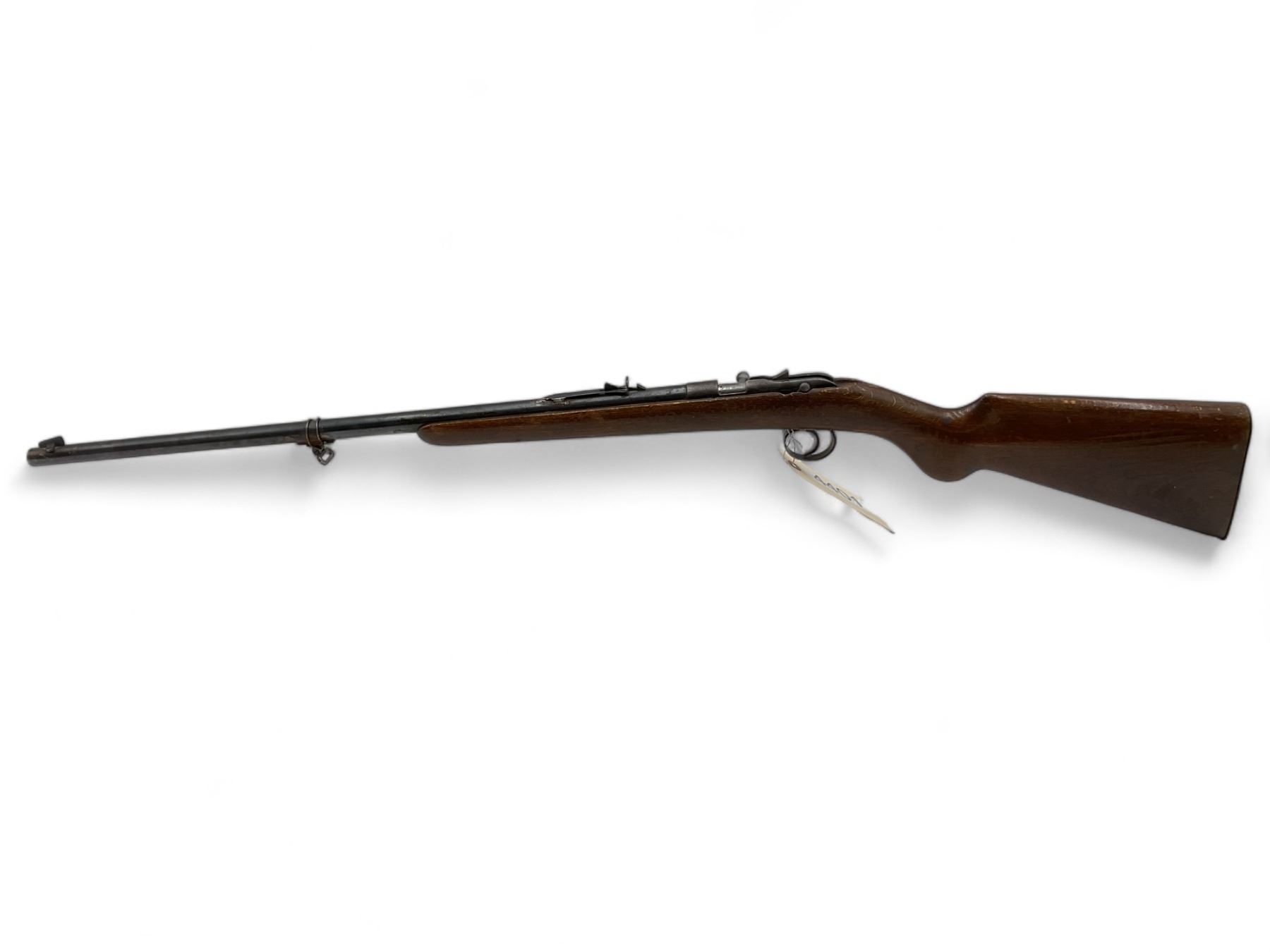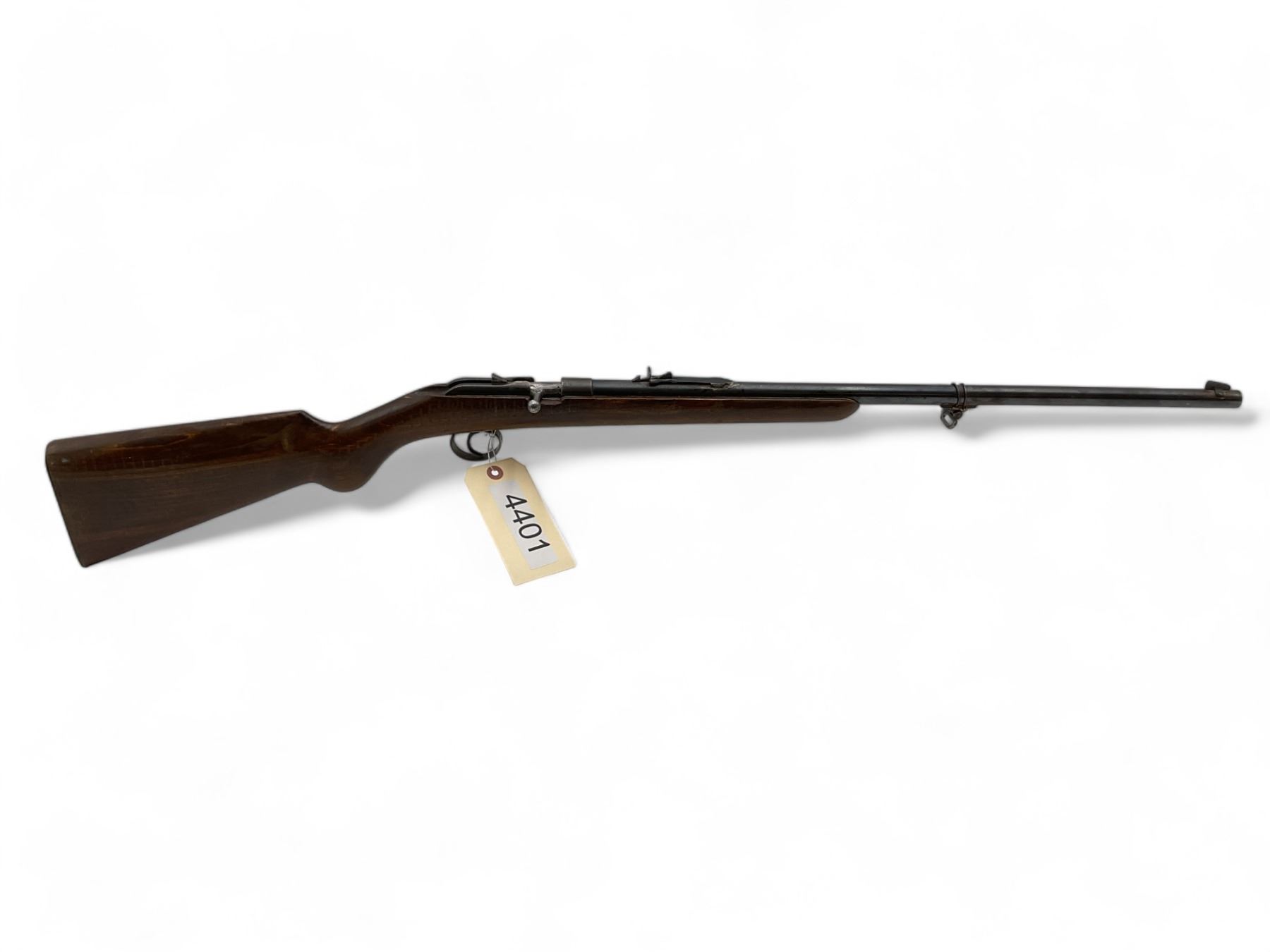 Husqvarna Single Shot Bolt Action Rifle 22LR 24" Barrel Wood Stock. Fixed front sight, adjustable rear sight has been welded . Front sling mount has been wired and soldered. Missing rear sling mount. This is a non-restricted firearm.