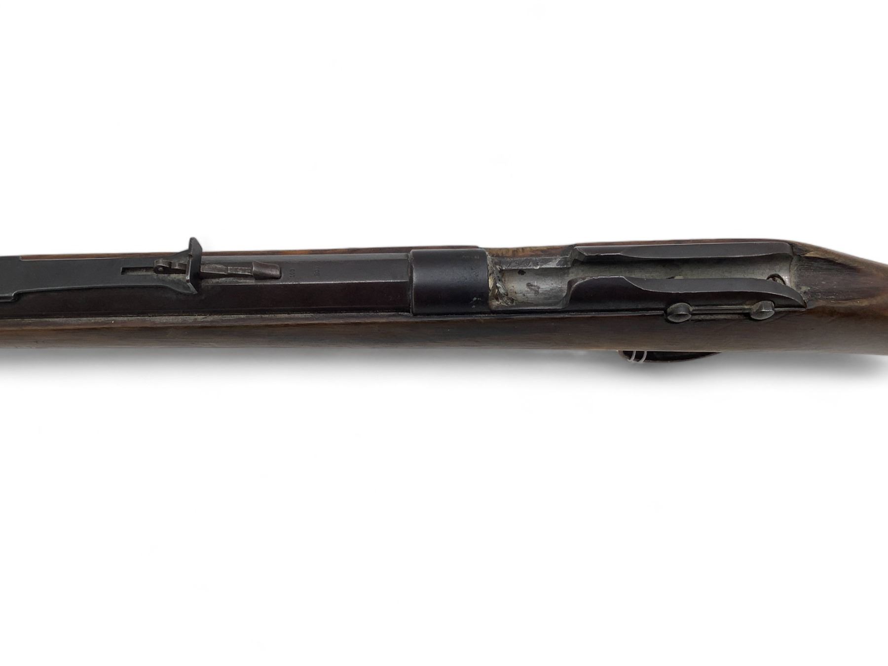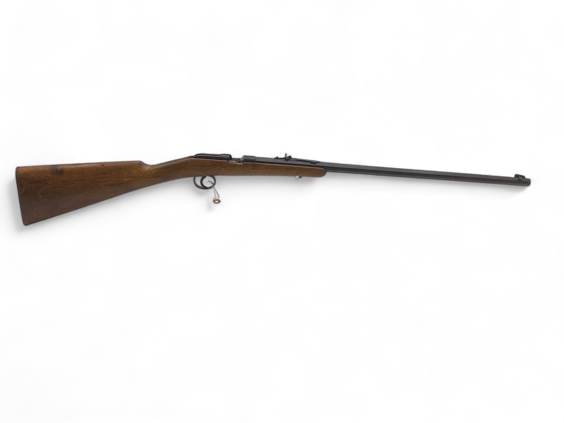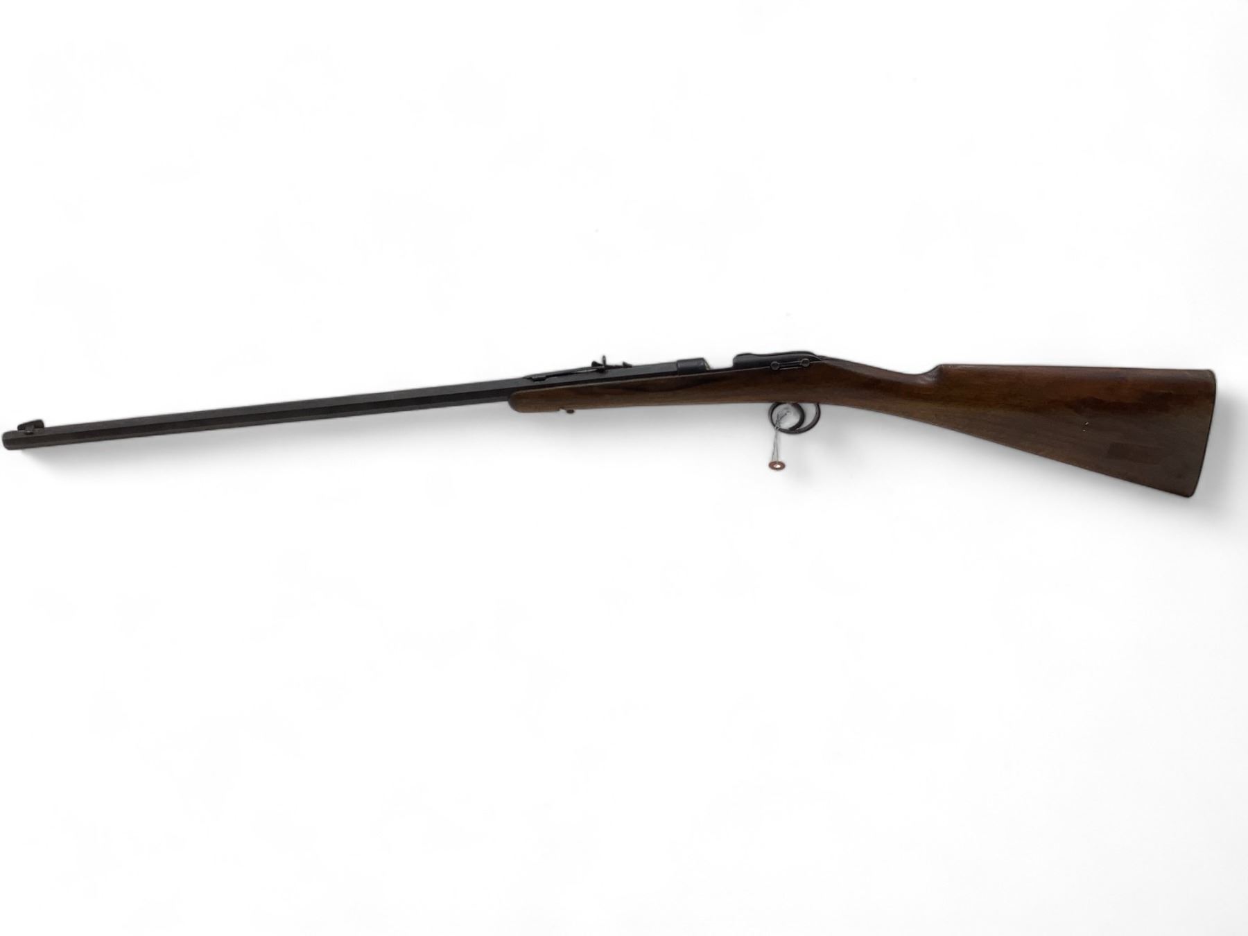 Husqvarna Single Shot Rifle 22LR 24" Plugged Octagon Barrel Wood Stock Parts Gun. Fixed front sight, adjustable rear sight. Barrel welded shut; no bolt assembly present. This is a non-restricted firearm.