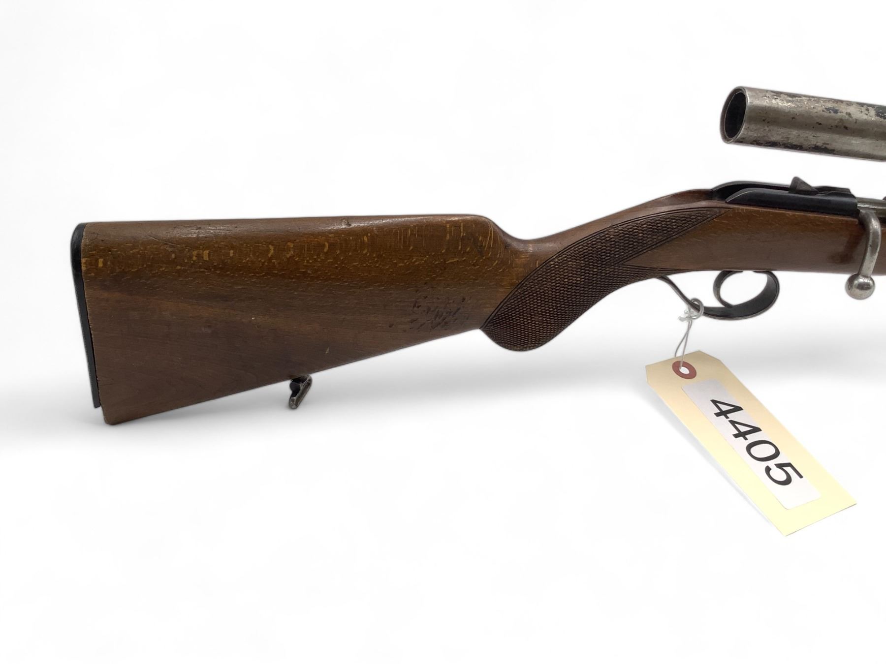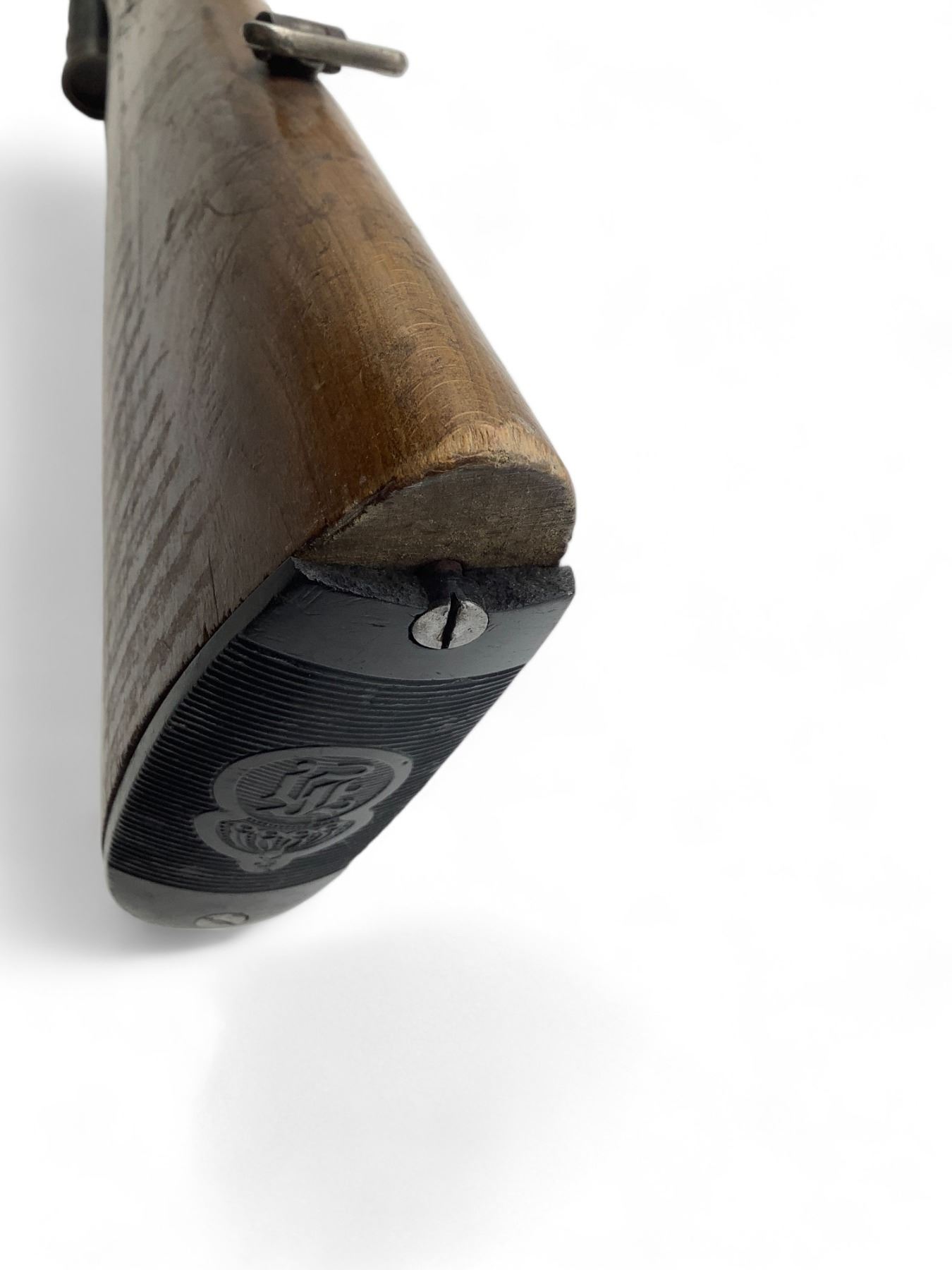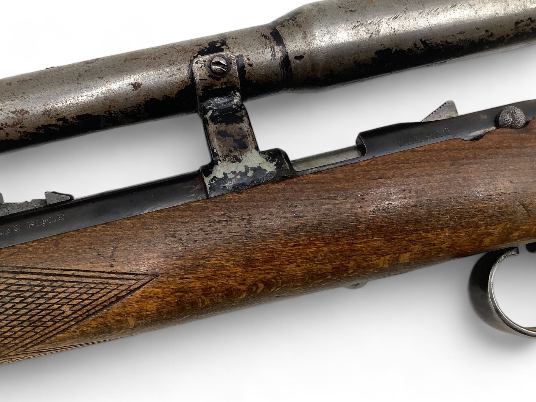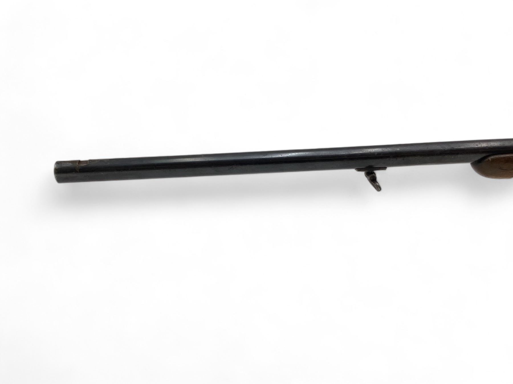 Husqvarna Single Shot Rifle 22LR 25" Barrel Wood Stock With Optic. Plastic buttplate cracked and missing a piece. Optic mounts appear to be soldered to barrel. Unknown optic brand and magnification. This is a non-restricted firearm.