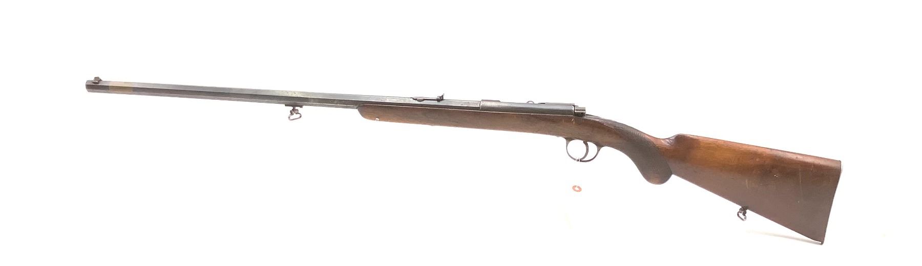 Husqvarna Single Shot Rifle 32-7.65MM (32-20?) 25" Octagon Barrel Wood Stock. Factory open sights, metal butt plate. Comes with sling mounts. This is a non-restricted firearm.