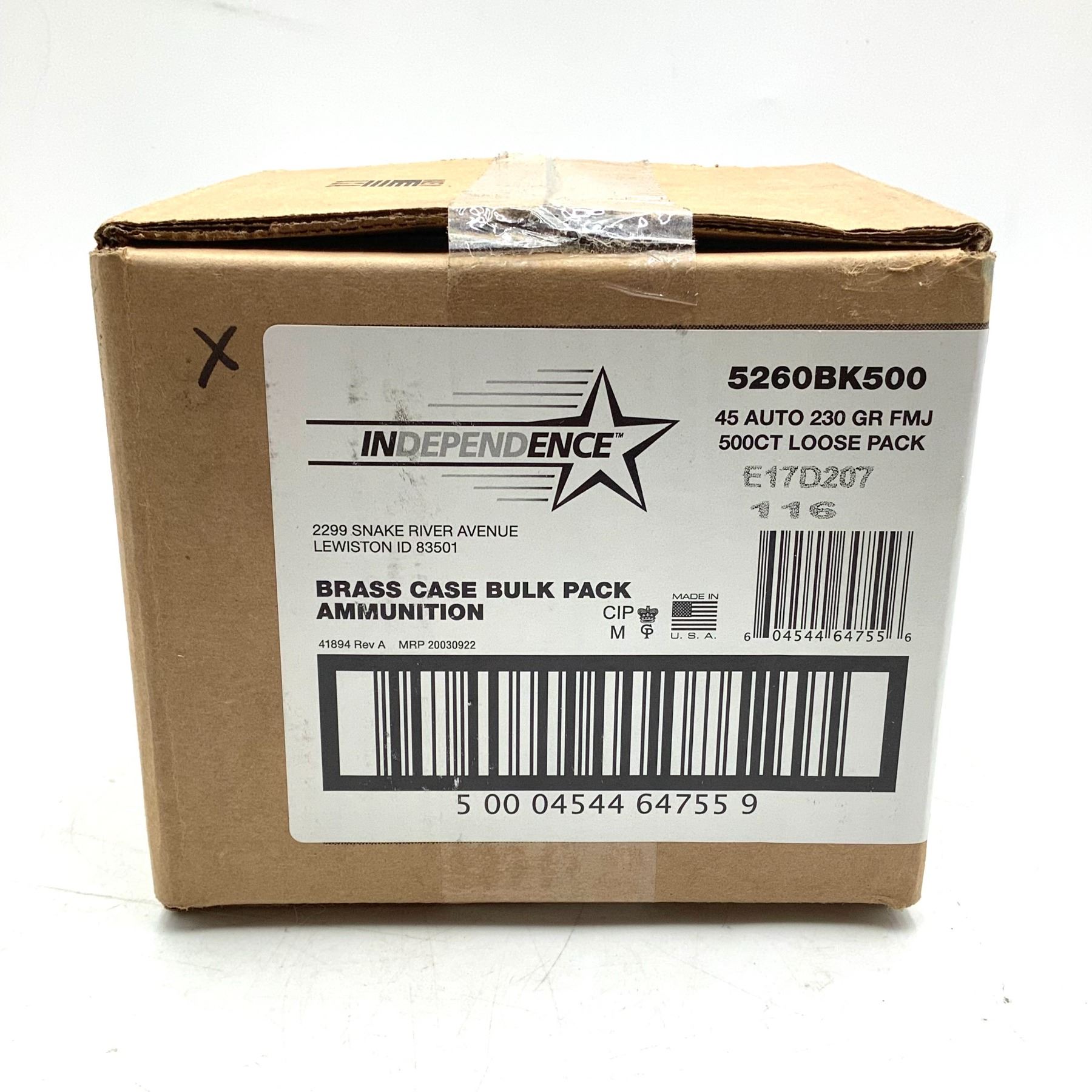 Independence Brass 45 ACP 230 Grain FMJ Bulk Ammunition, 500 Round Case