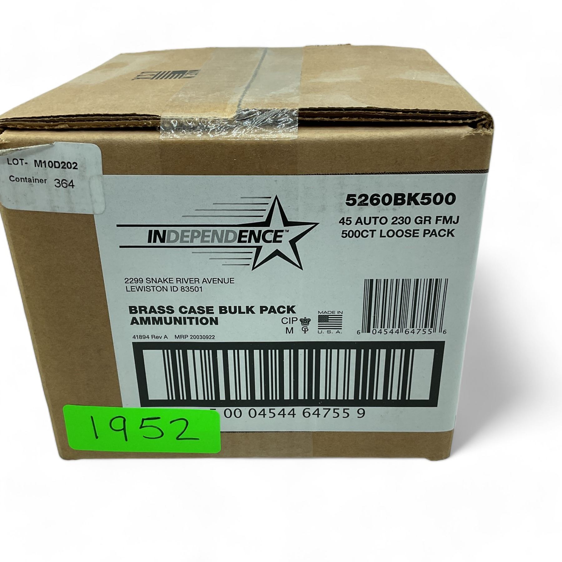 Independence Brass 45 ACP 230 Grain Loose Ammunition, 500 Round Case