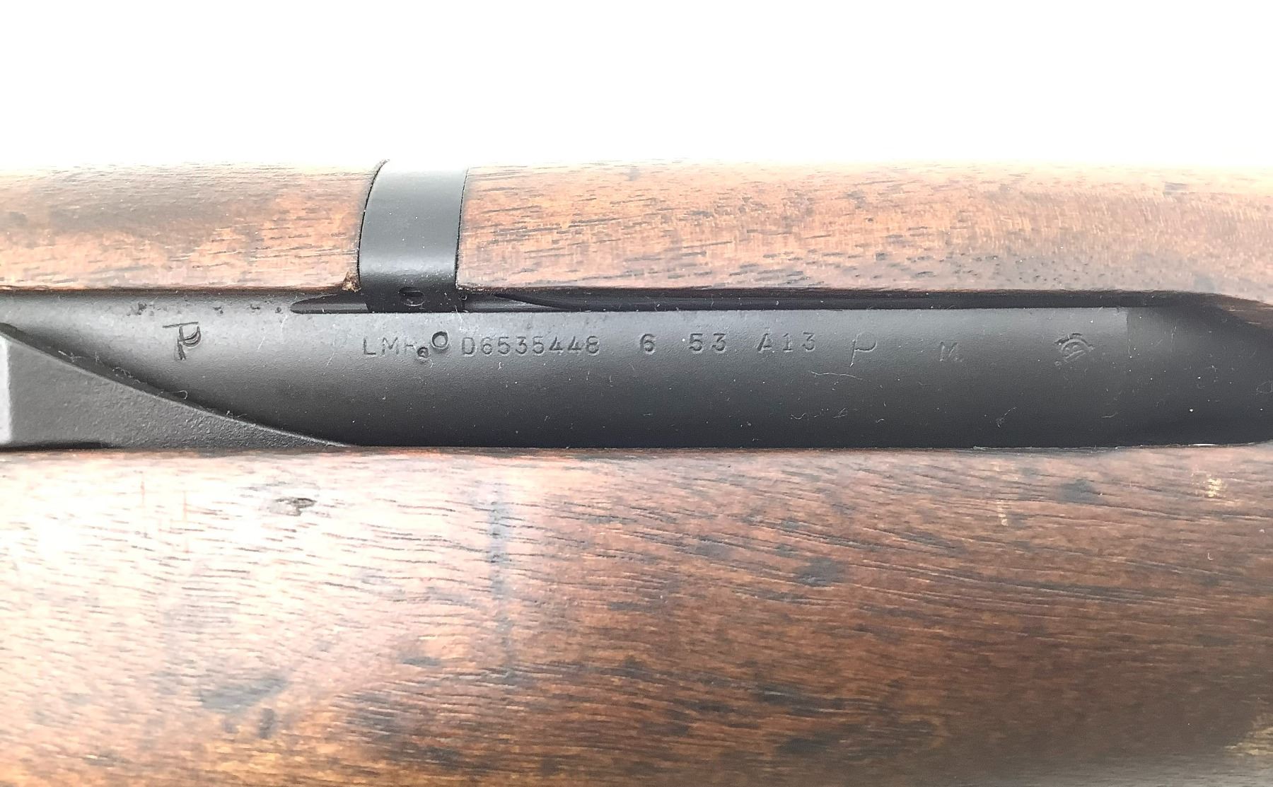 1954 International Harvester M1 Garand semi-automatic service rifle. 24" barrel with good bore chambered in 30-06 Springfield. Wood Stock.