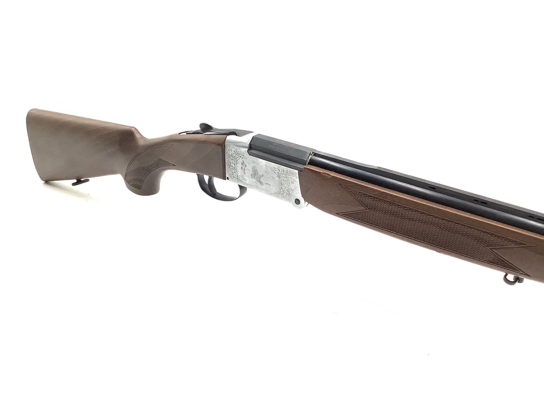 Investarm Over Under 410 Shotgun 3" Chambers 28" Barrels Wood Stock. Consignor indicates gun is very hard to open; may have issue with break open lever. Vent rib with bead sight. This is a non-restricted firearm.