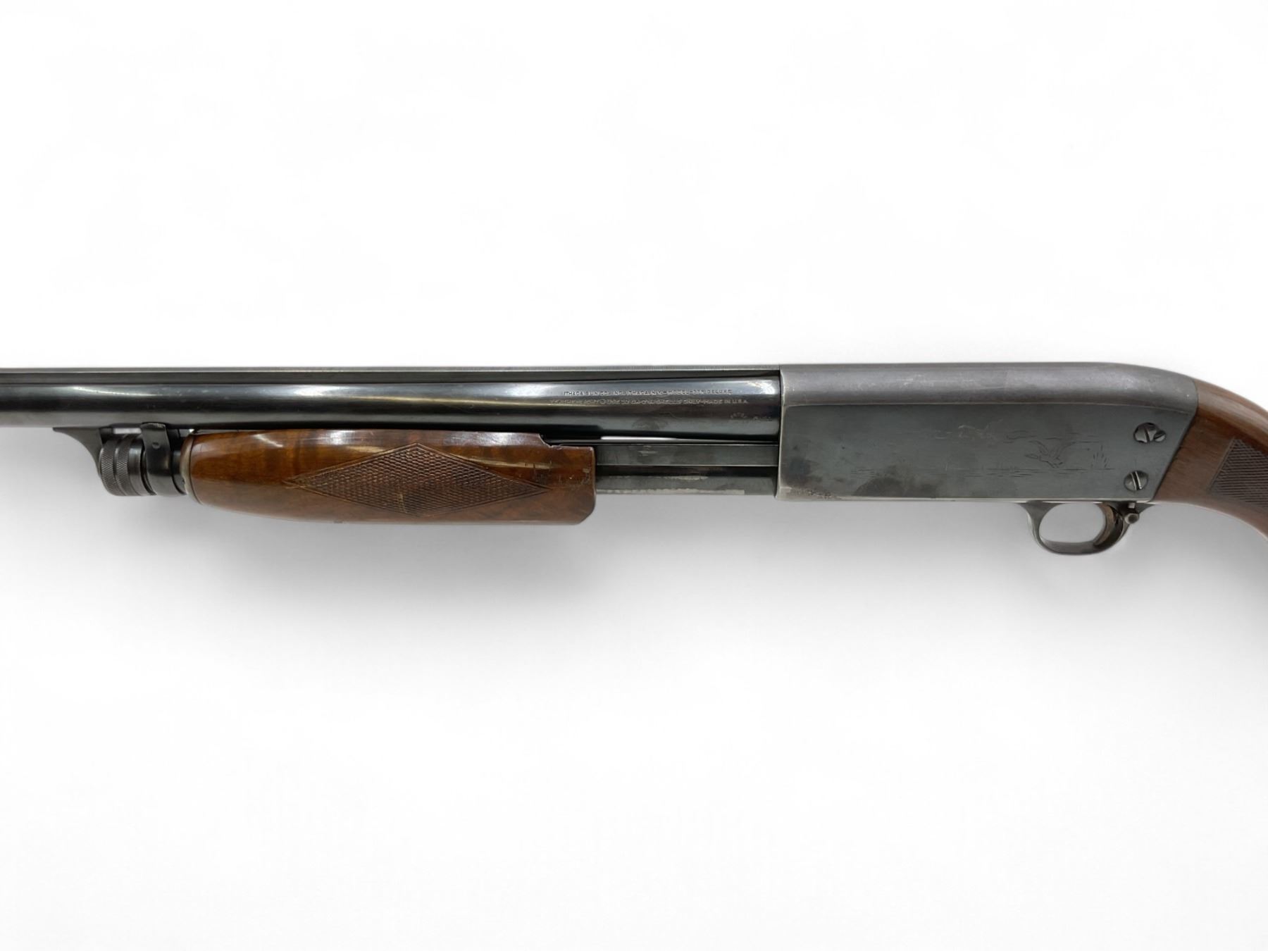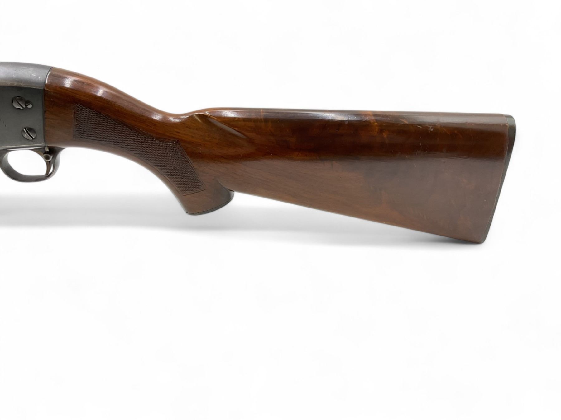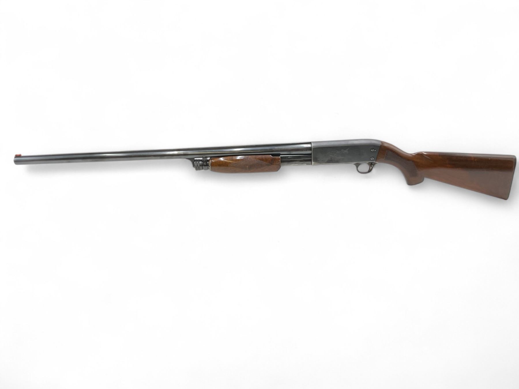 Ithaca Model 37R Deluxe Pump Action Shotgun 12Ga 2.75" Chamber 30" Barrel Wood Stock. Fiber optic sight; fixed choke. Bottom eject. This is a non-restricted firearm.